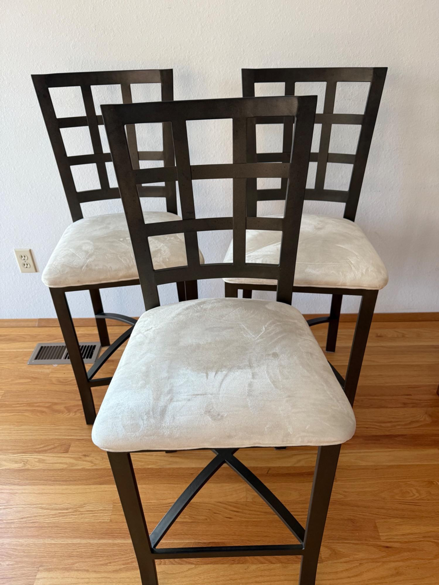 Lot # 23 - Set of 3 Bar Stools – Metal Frame w/ Upholstered Seats