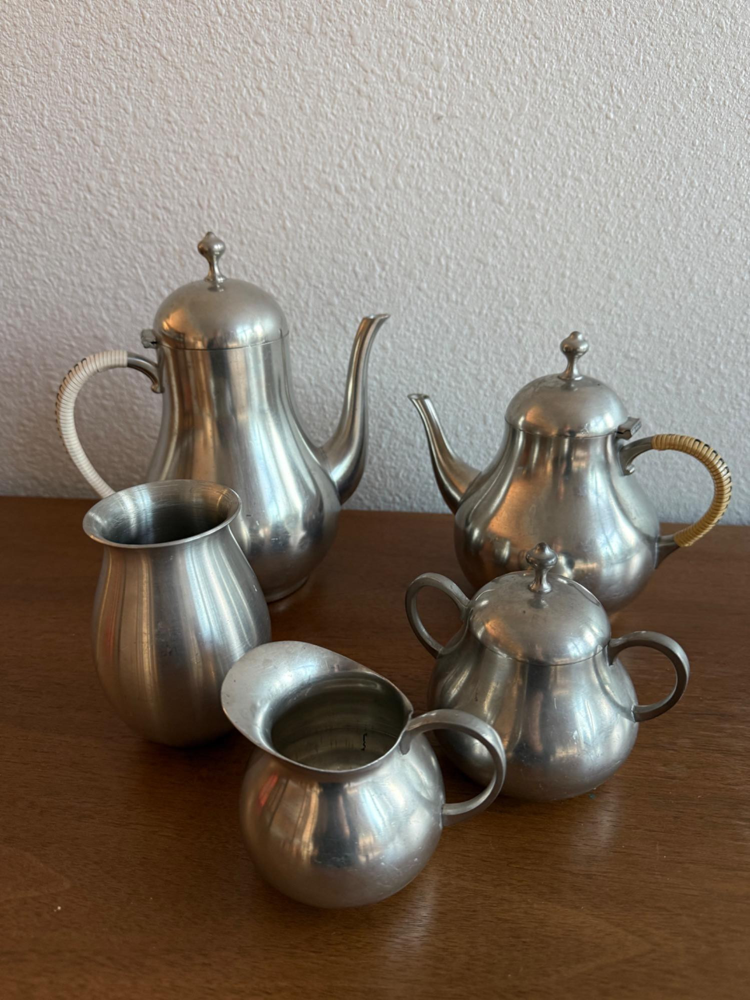 Scandinavian Modern Pewter Tea & Coffee Set 8" to 6" in size