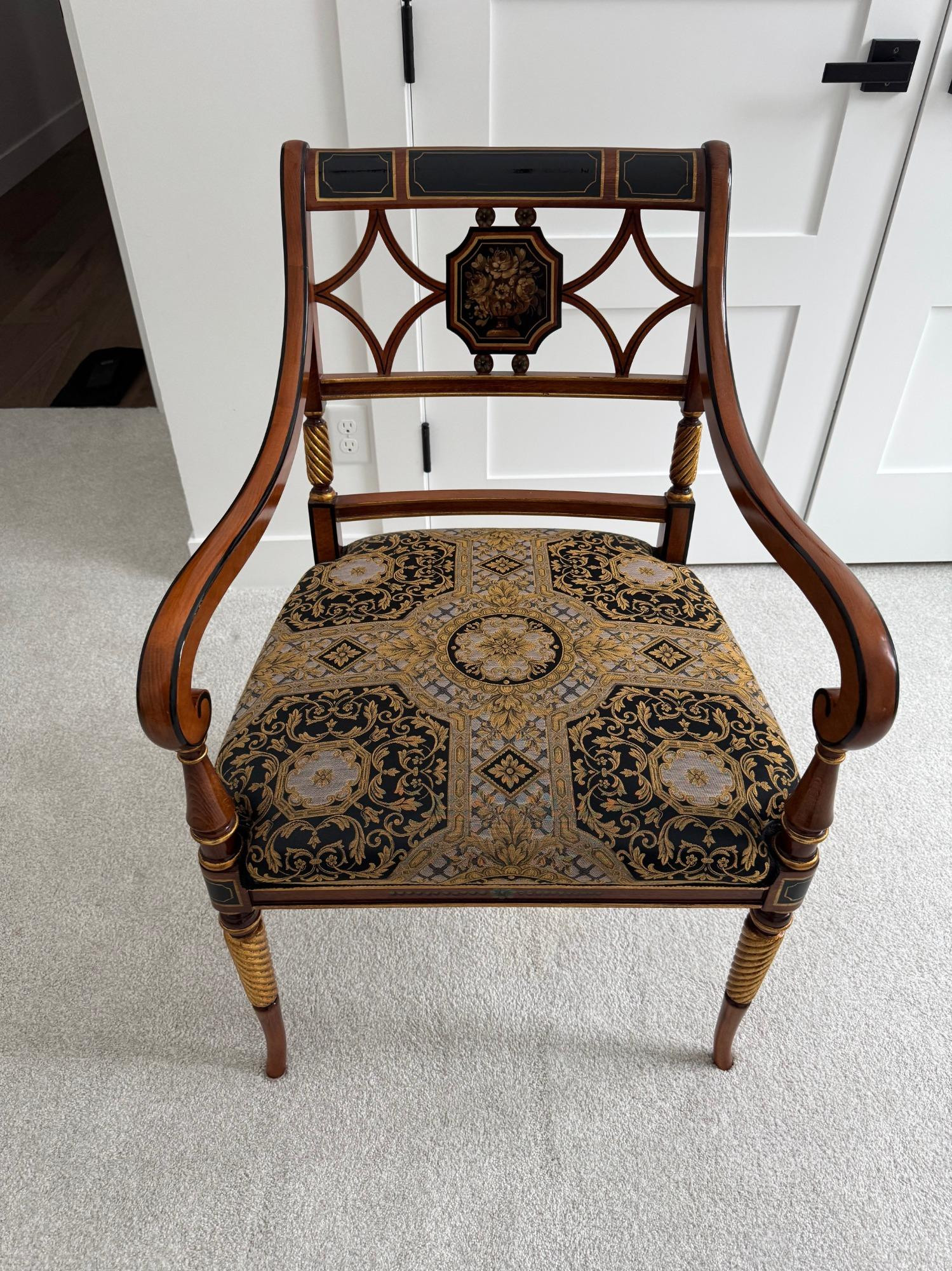 Possible Versace Chair. Please Inspect photos before bidding. Owner stated this is a Versace chair and was bought in Los Angeles. There is no provenance provided. The Versace Chair is a luxurious, high-end piece of furniture designed by the renowned Italian fashion house Versace. Known for their bold and opulent designs, Versace's furniture collection reflects the same lavish aesthetics that the brand is famous for in the world of fashion. The Versace Chair is often seen as a statement piece that combines luxury, comfort, and high art.