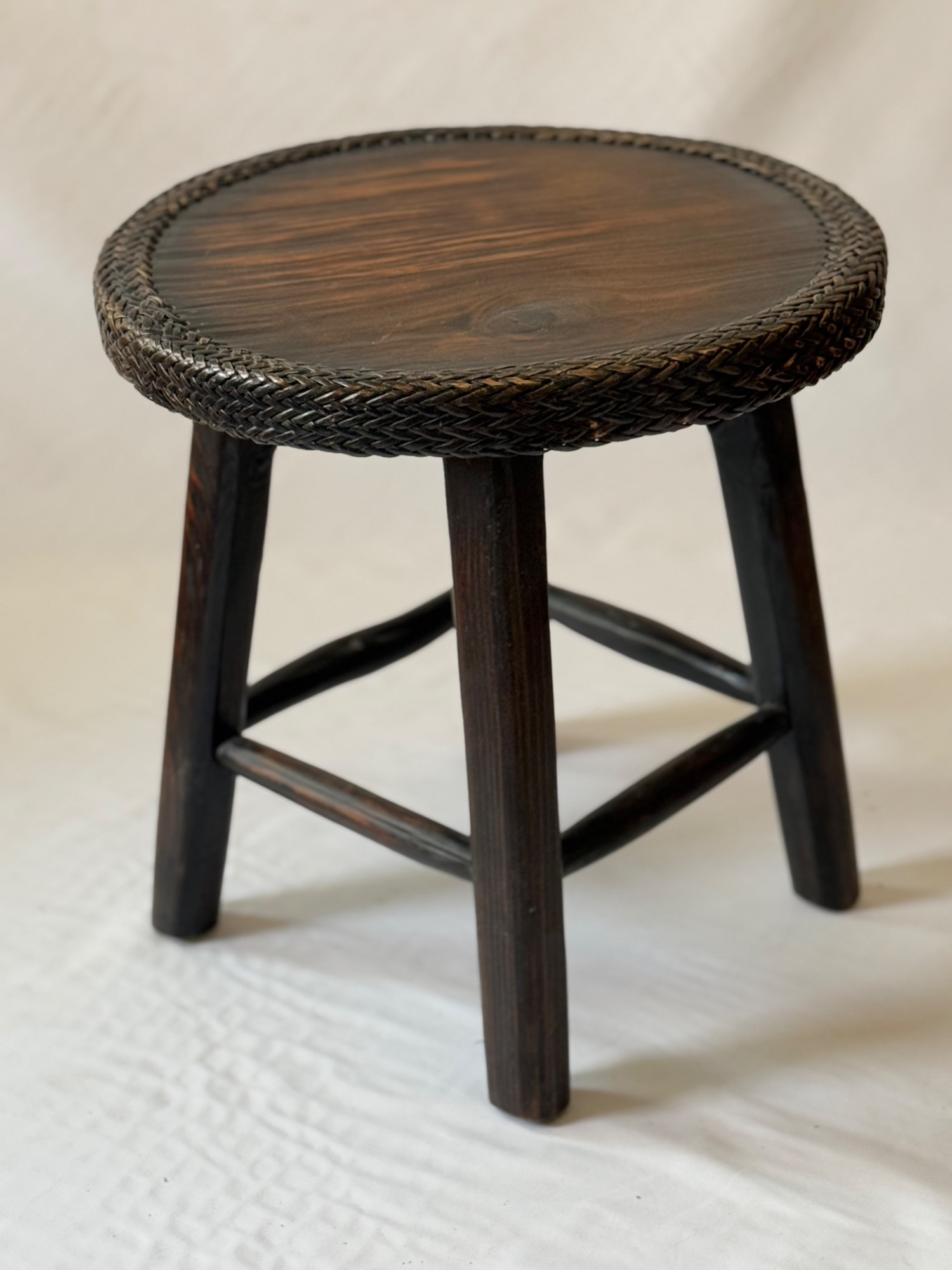 Lot # 27 - Wooden Stool with Woven Textured Trim