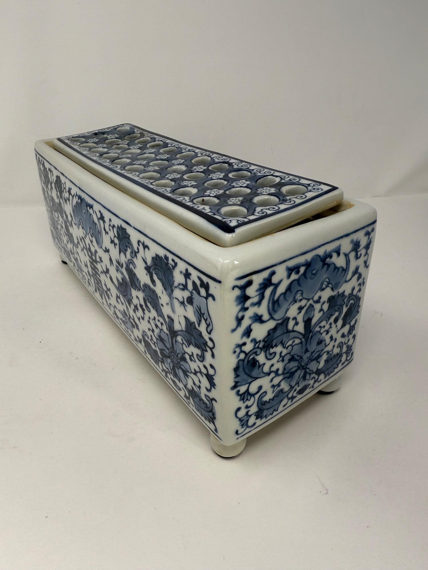 Chinoiserie Porcelain Flower Arranger Container with Removable Lid.