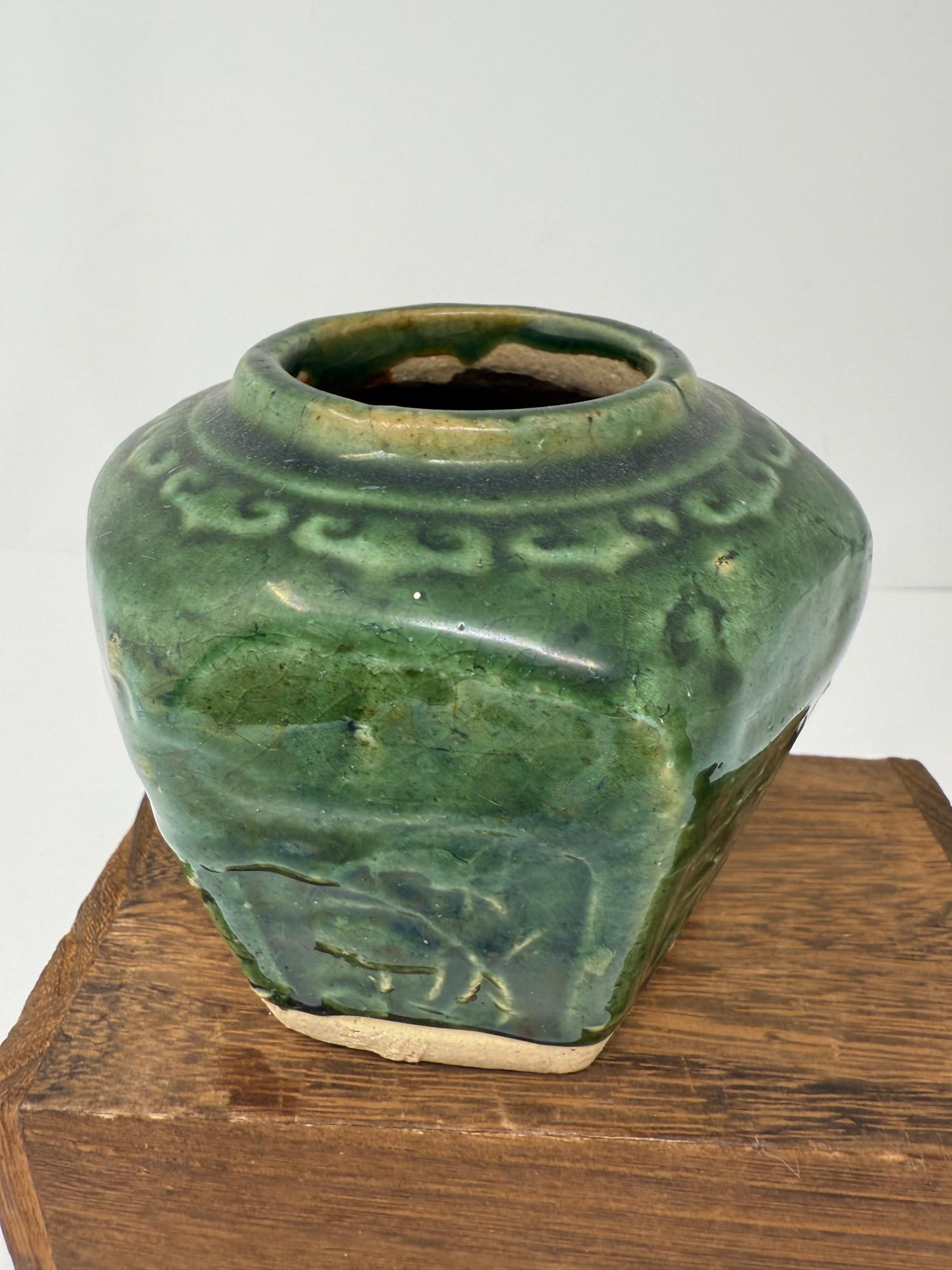 Glazed Shiwan Stoneware Ginger Jar Hexagonal. 4 x 4