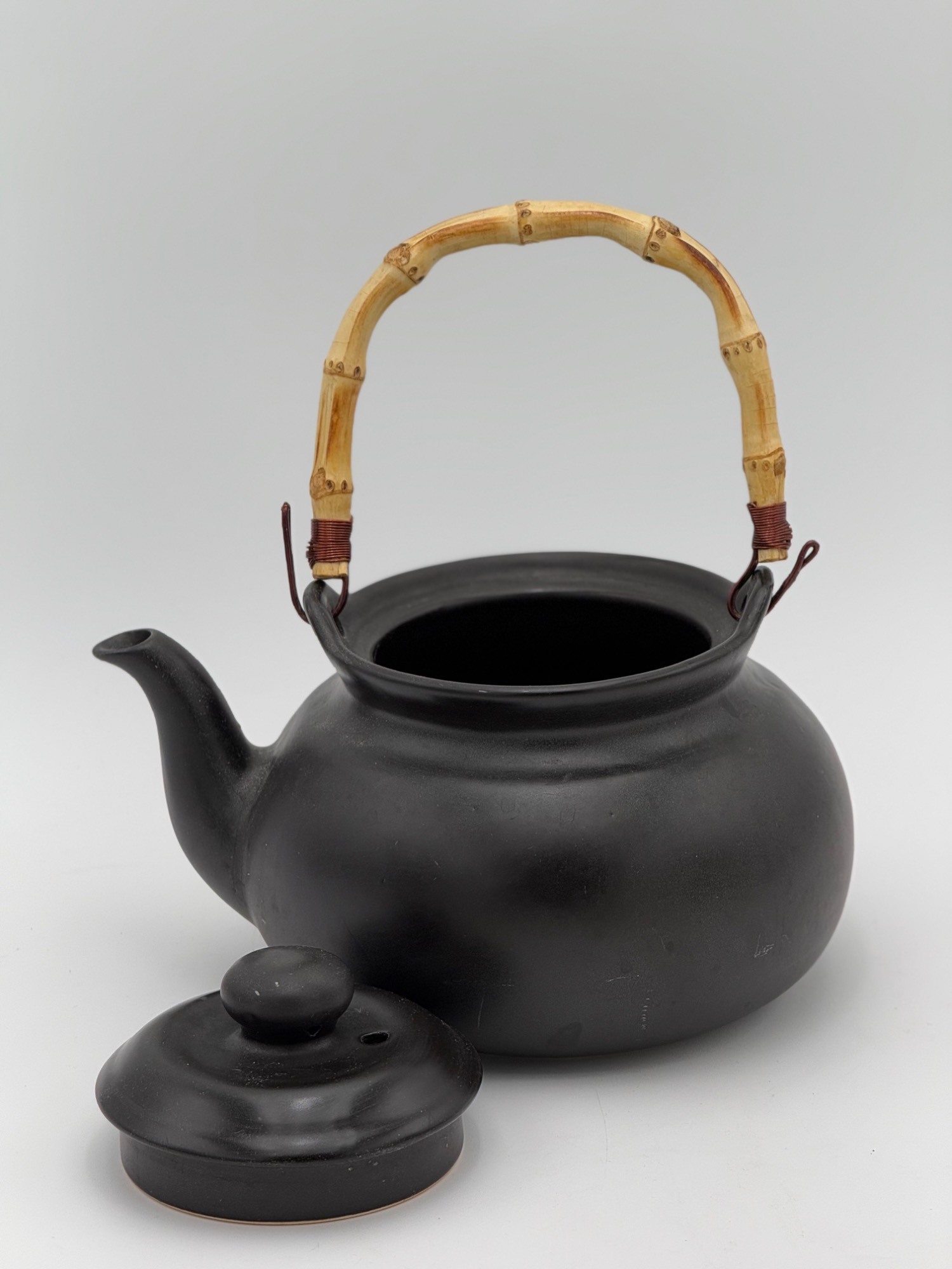 Lot # 97 - Elegant Black Ceramic Teapot with Bamboo Handle – Vintage Inspired