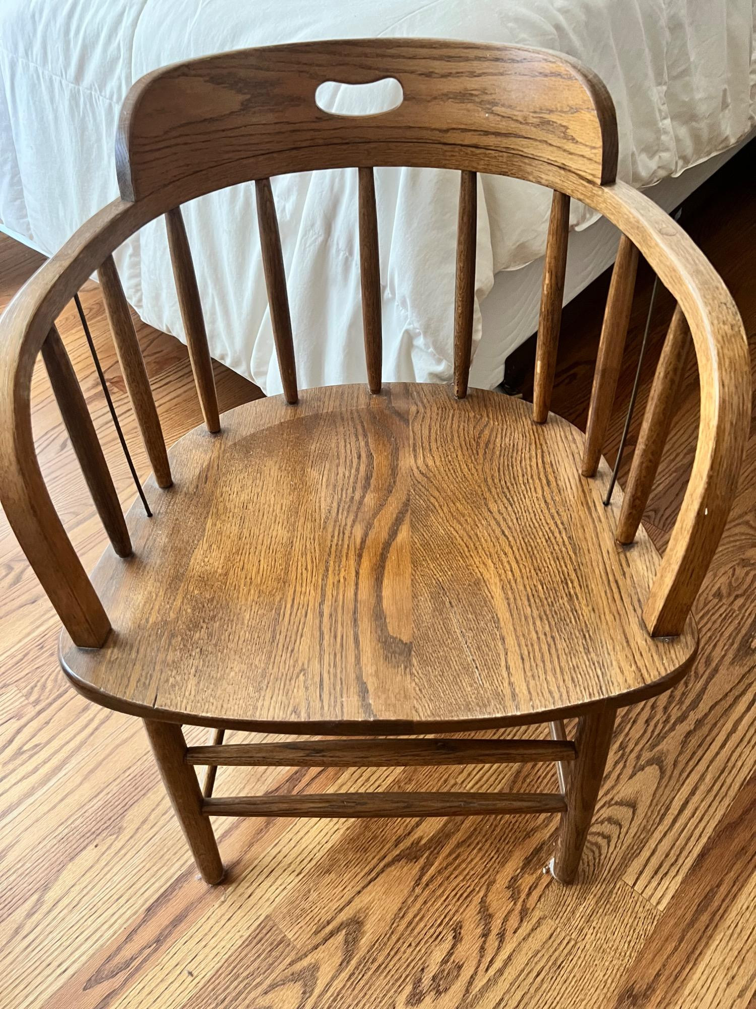 Lot # 135 - Vintage Oak Captains Chair – Classic Windsor Style