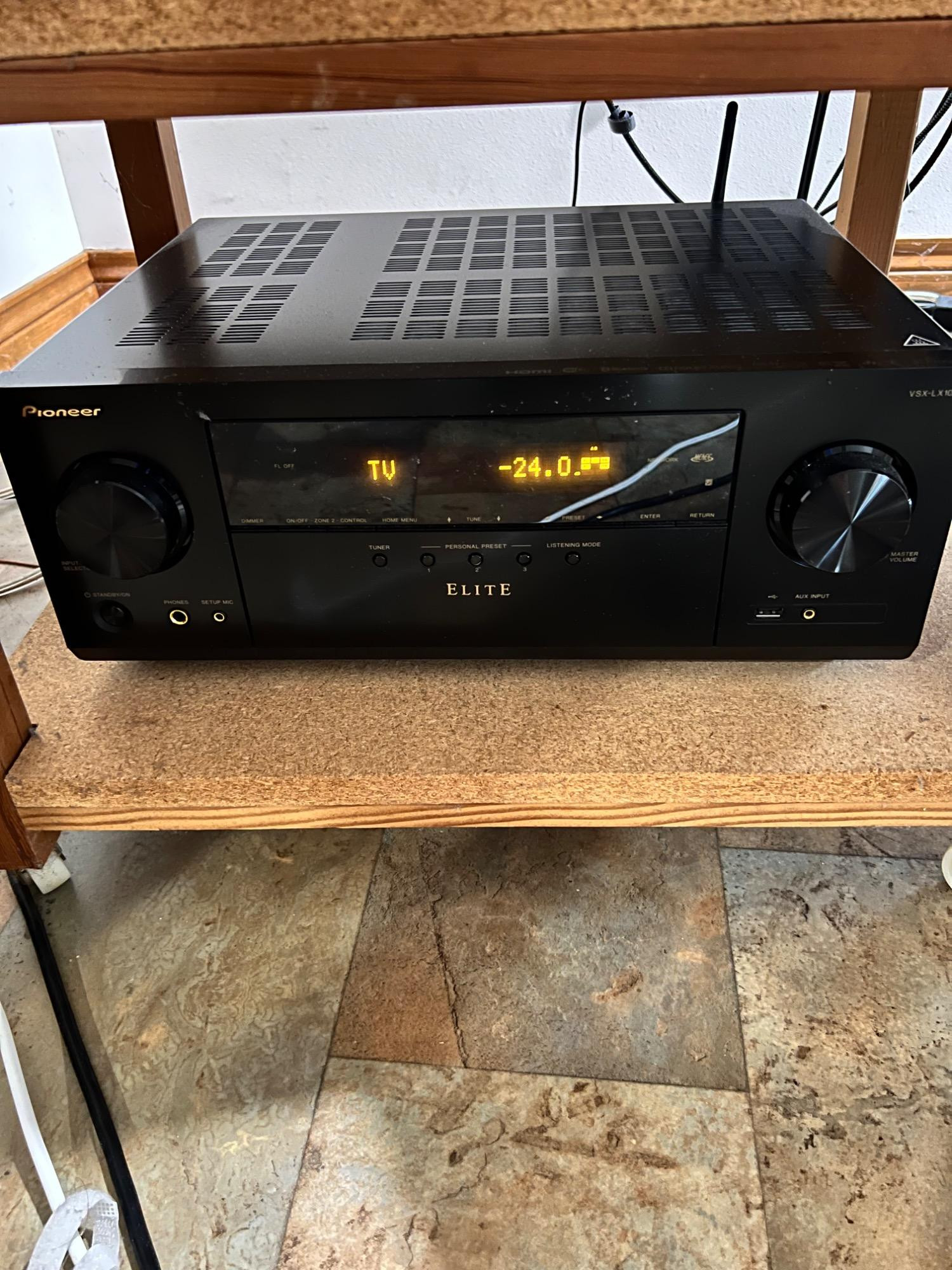 Pioneer Elite VSX-43 home theater receiver, known for high-quality audio performance and build. We had no way to test it, to confirm if it works, but power was on.