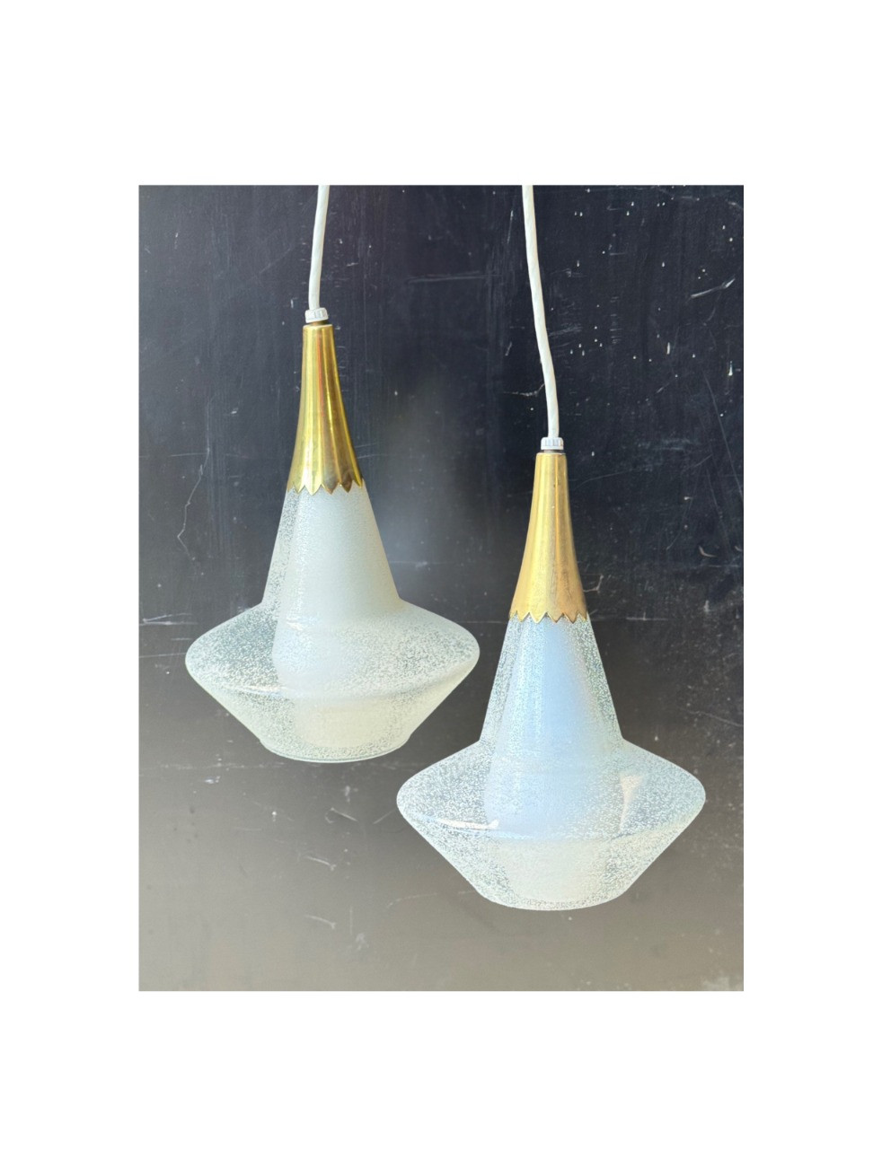 Lot # 13 - 1960's Mid Century Scandinavian Design Glass & Brass Pendants