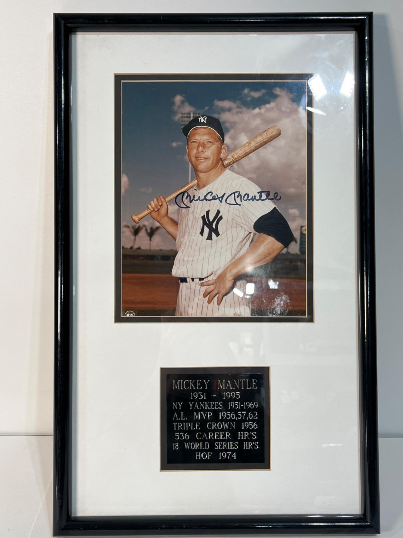 Lot # 1 - The Legendary Mickey Mantle Signed and Framed Photo with Plaque