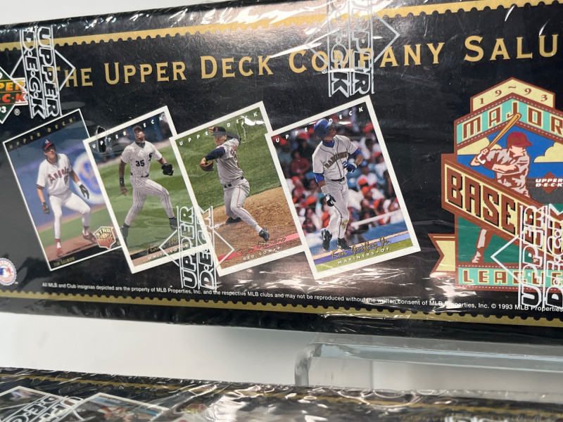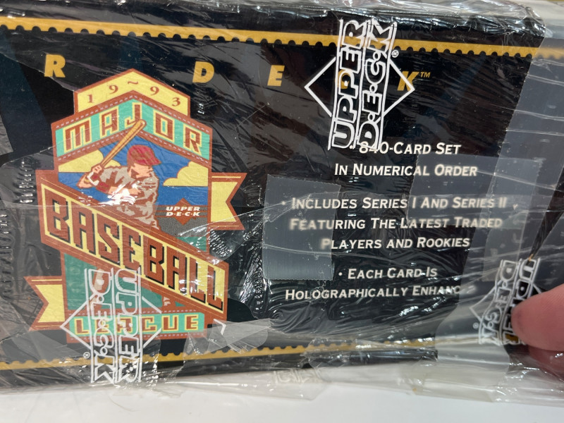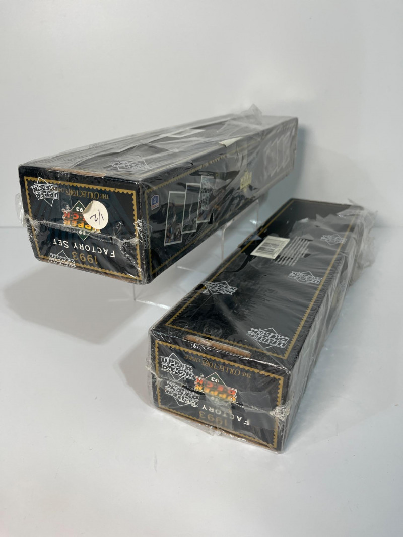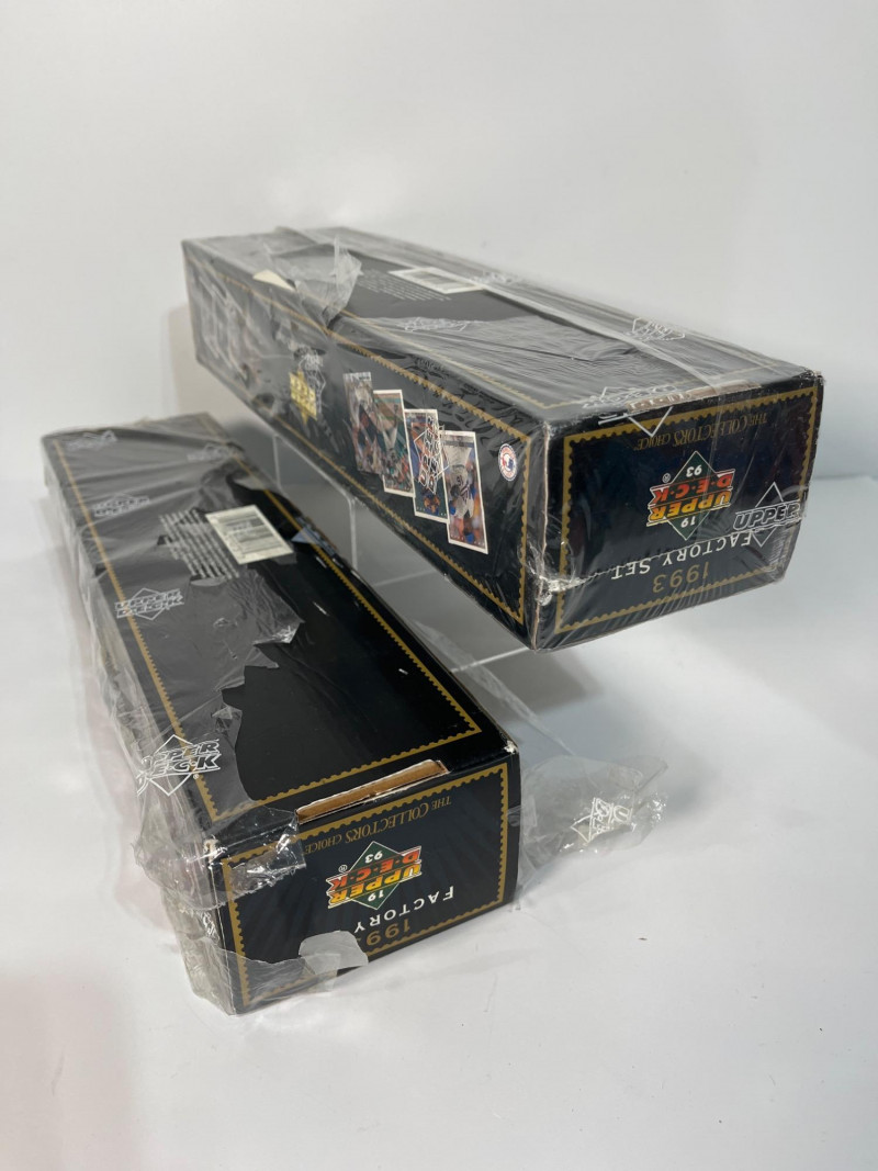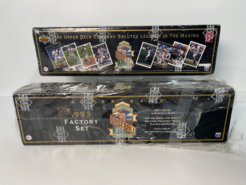This lot is a 1993 upper deck, numerically ordered factory set and an additional 1993 box of cards. It appears that both boxes have been opened as their seals have been broken. Completeness of each set is unknown. Please note that we do not go through trading card sets to assess their completeness. While we do make every effort to describe the exact contents of each lot, we cannot guarantee that a previously opened box contains every card advertised on its label. Unless the description expressly states that a case or box is sealed, please assume that the card set inside is or may be incomplete.