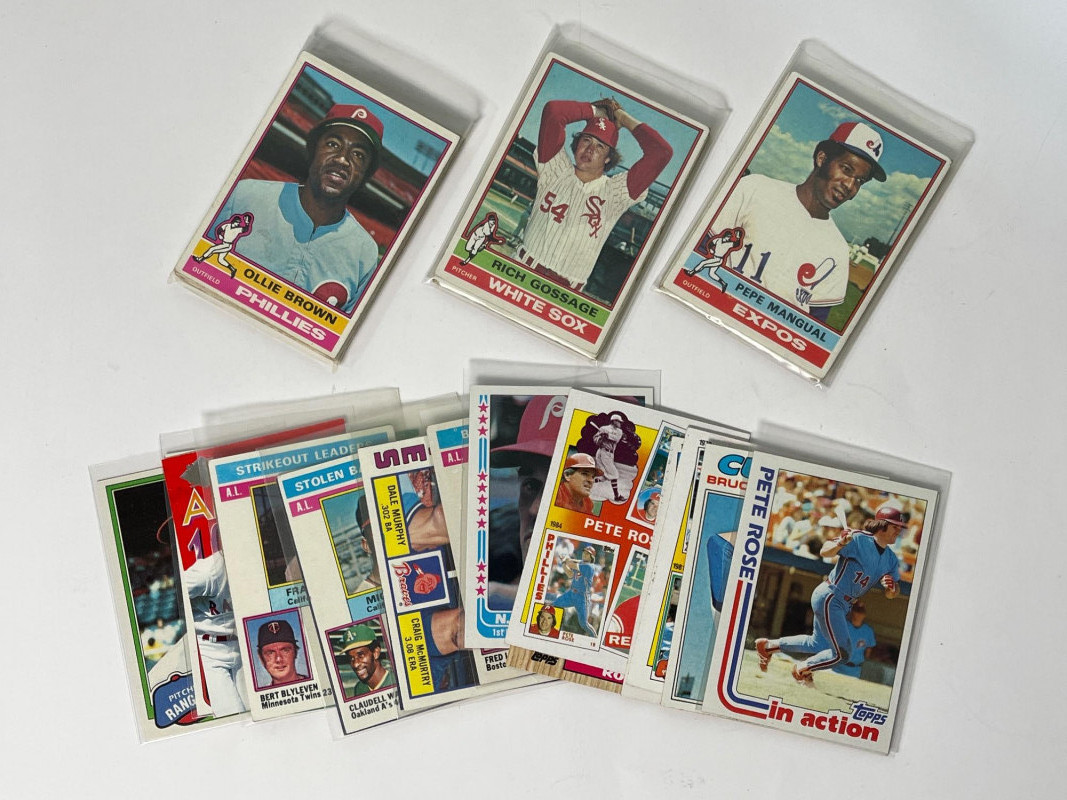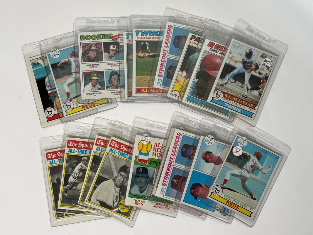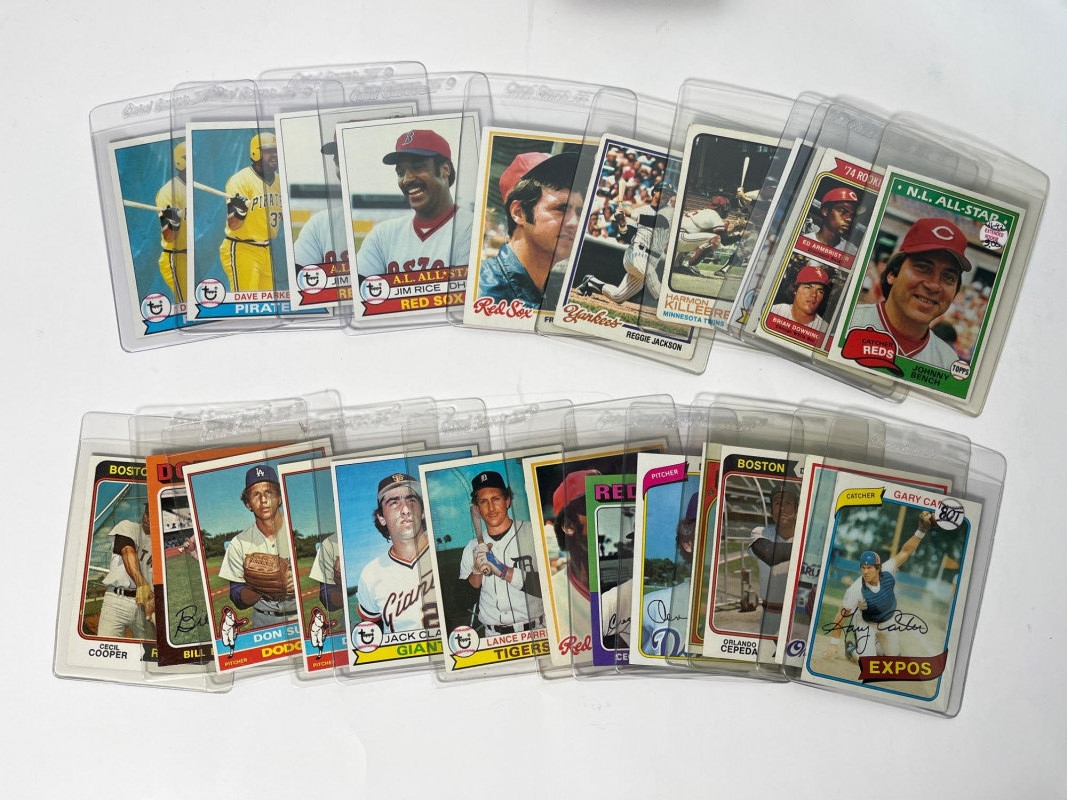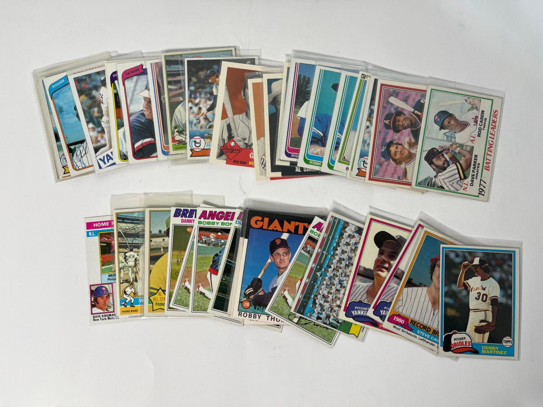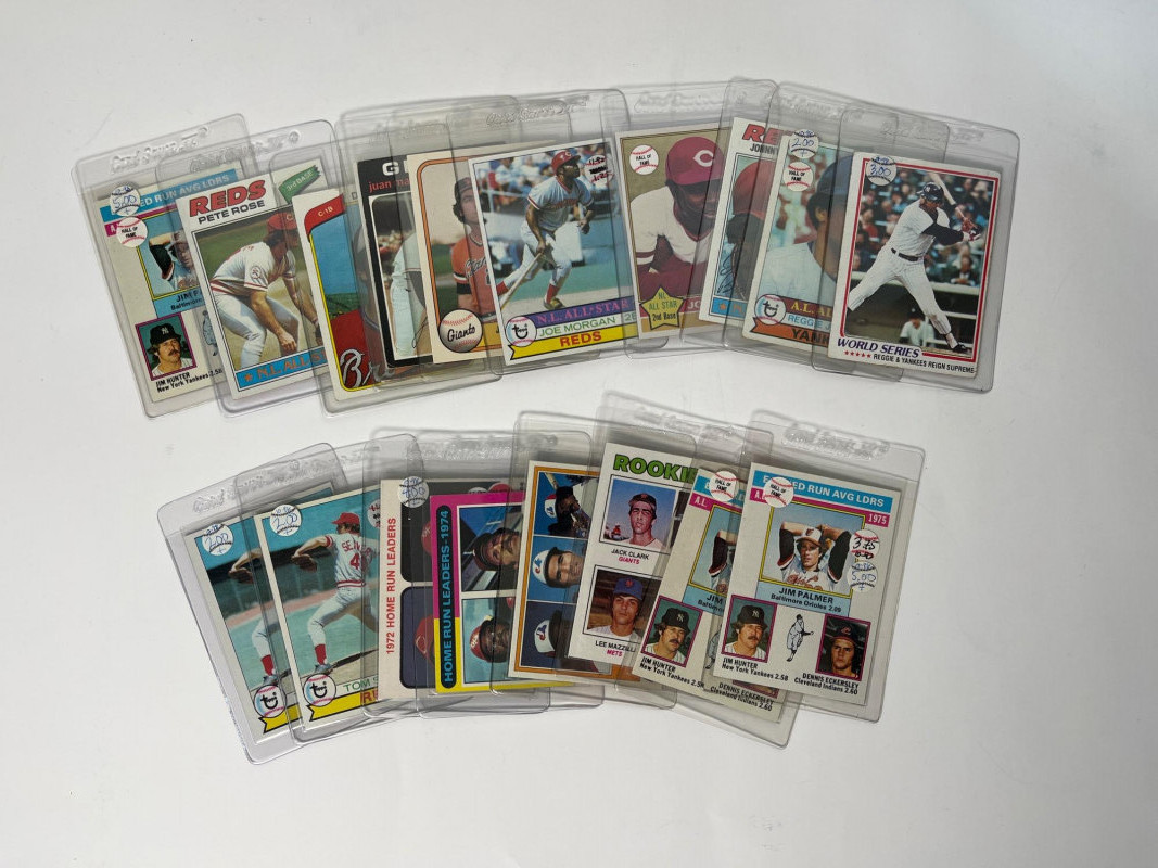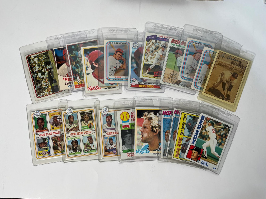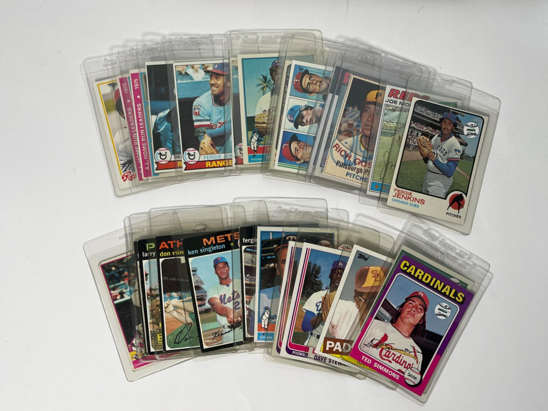 This lot includes a ton of classic players from 1980 and earlier. Most of these cards are from the '70s. Some of the collectibles include postcards and two collectible records, one on Mickey Mantle and one on Roger Marris. This collection is perfect for the baseball historian! Please note that we do not go through trading card sets to assess their completeness. While we do make every effort to describe the exact contents of each lot, we cannot guarantee that a previously opened box contains every card advertised on its label. Unless the description expressly states that a case or box is sealed, please assume that the card set inside is or may be incomplete.