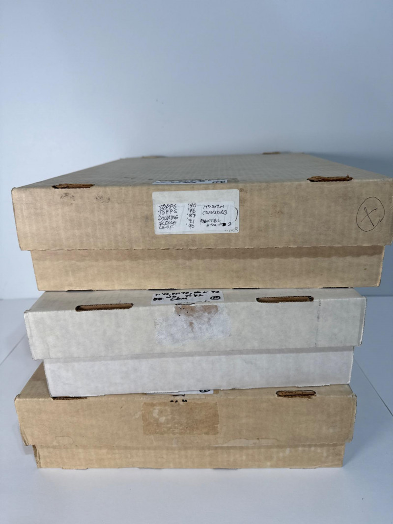 Box contains several different brands of cards, Upper Deck, Flair, Don Ross, Topps and many others. I have not gone through these boxes so you’re getting what you get. We took pictures of some not all. Please note that we do not go through trading card sets to assess their completeness. While we do make every effort to describe the exact contents of each lot, we cannot guarantee that a previously opened box contains every card advertised on its label. Unless the description expressly states that a case or box is sealed, please assume that the card set inside is or may be incomplete.