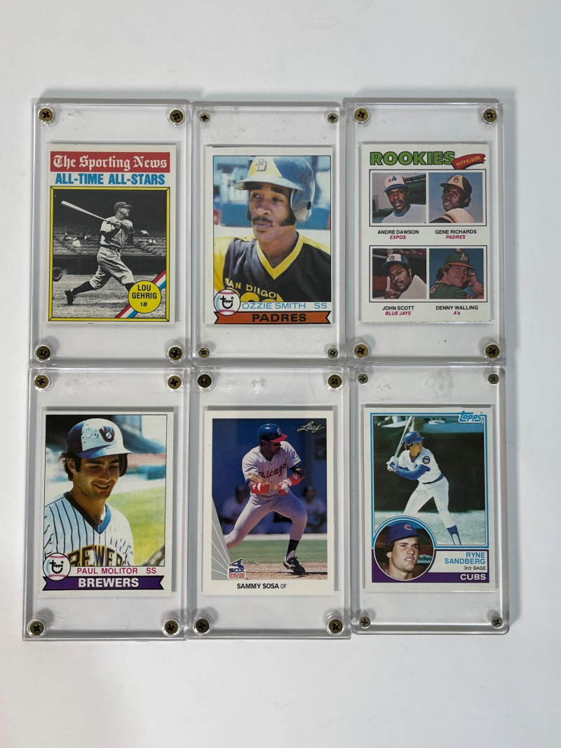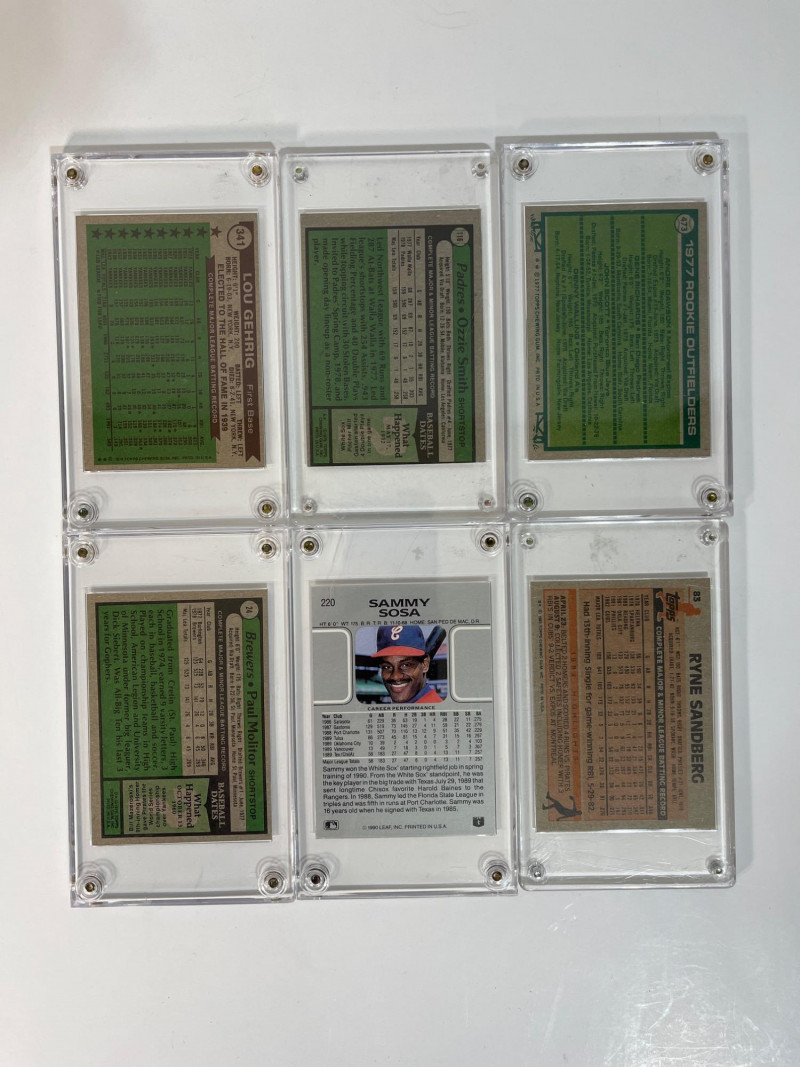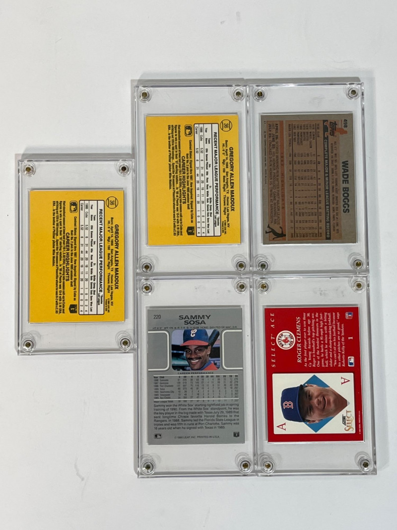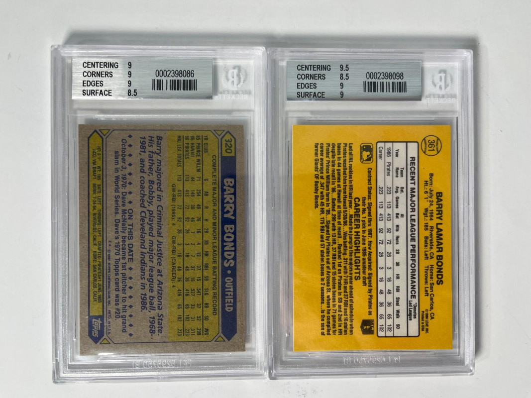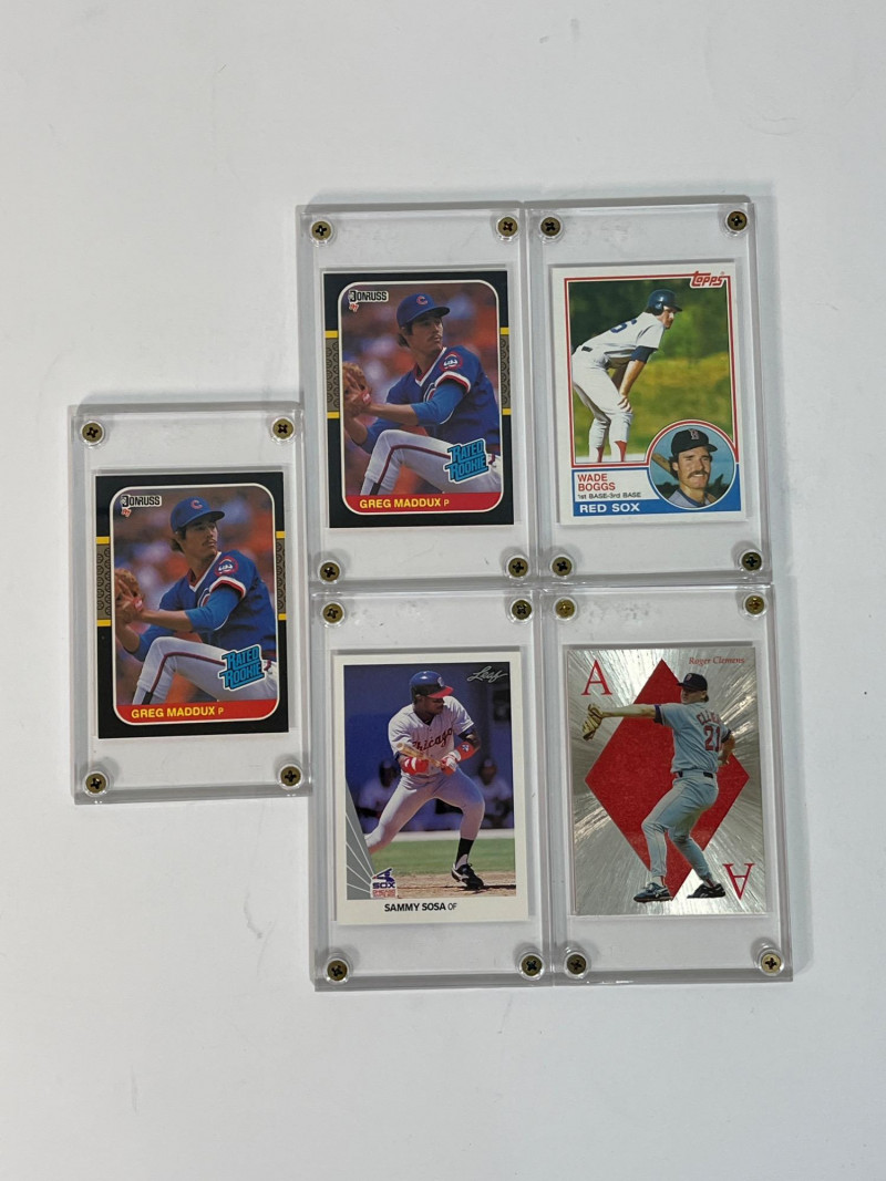 This lot includes an impressive collection of both graded and plastic case mounted baseball cards from popular players. The collection includes two mint Gary Bonds cards, a mint Roger Clements card and a mint Mark McGuire 1984 United States baseball team card. The cards in the plastic mounts are ungraded so official condition is unknown.