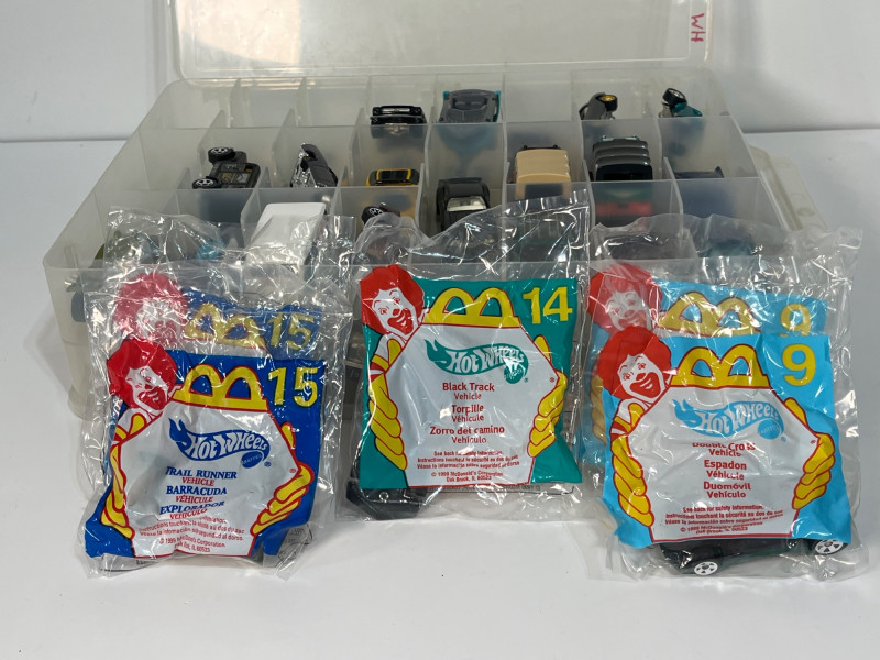 This case contains over 40 diecast cars from Hot Wheels. One unique feature of this lot is that there are a handful of McDonalds Hot Wheels Happy Meal toys from 1999. The vehicles vary from a milk truck to muscle cars so this is an exciting variety!
