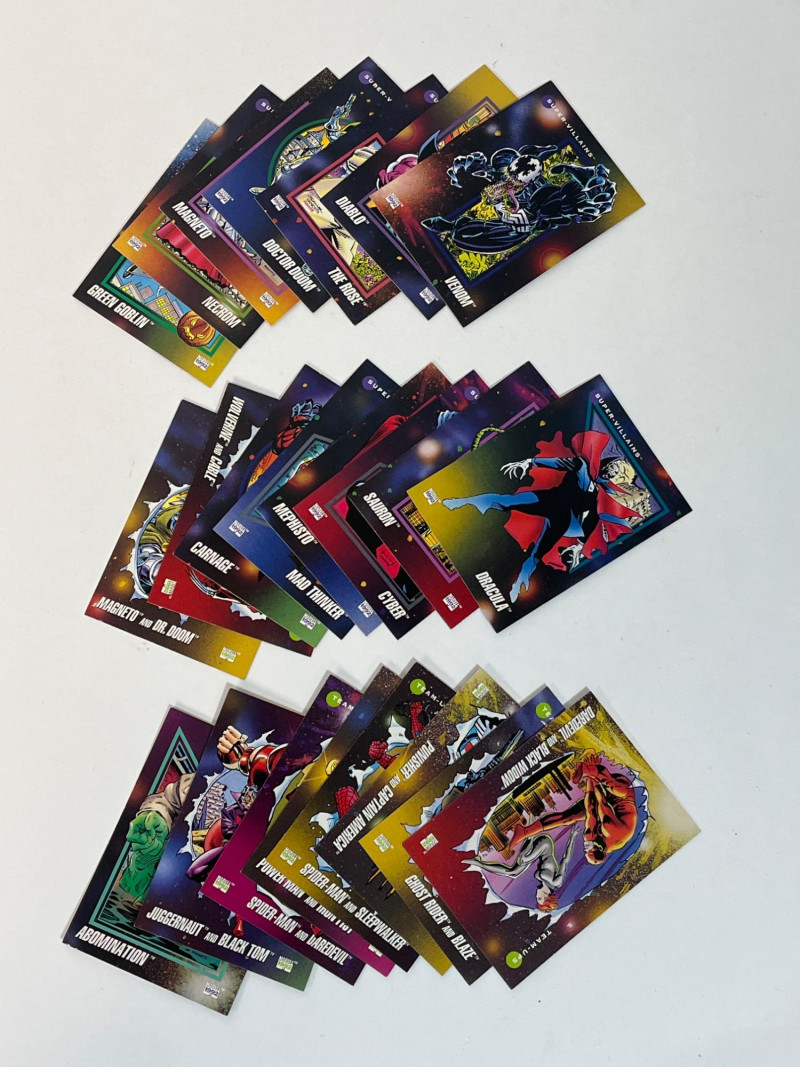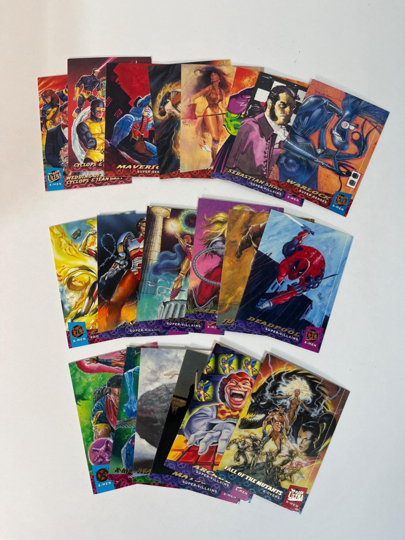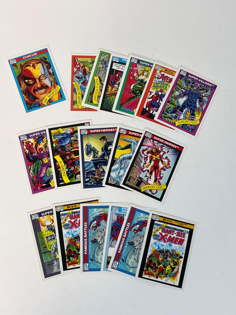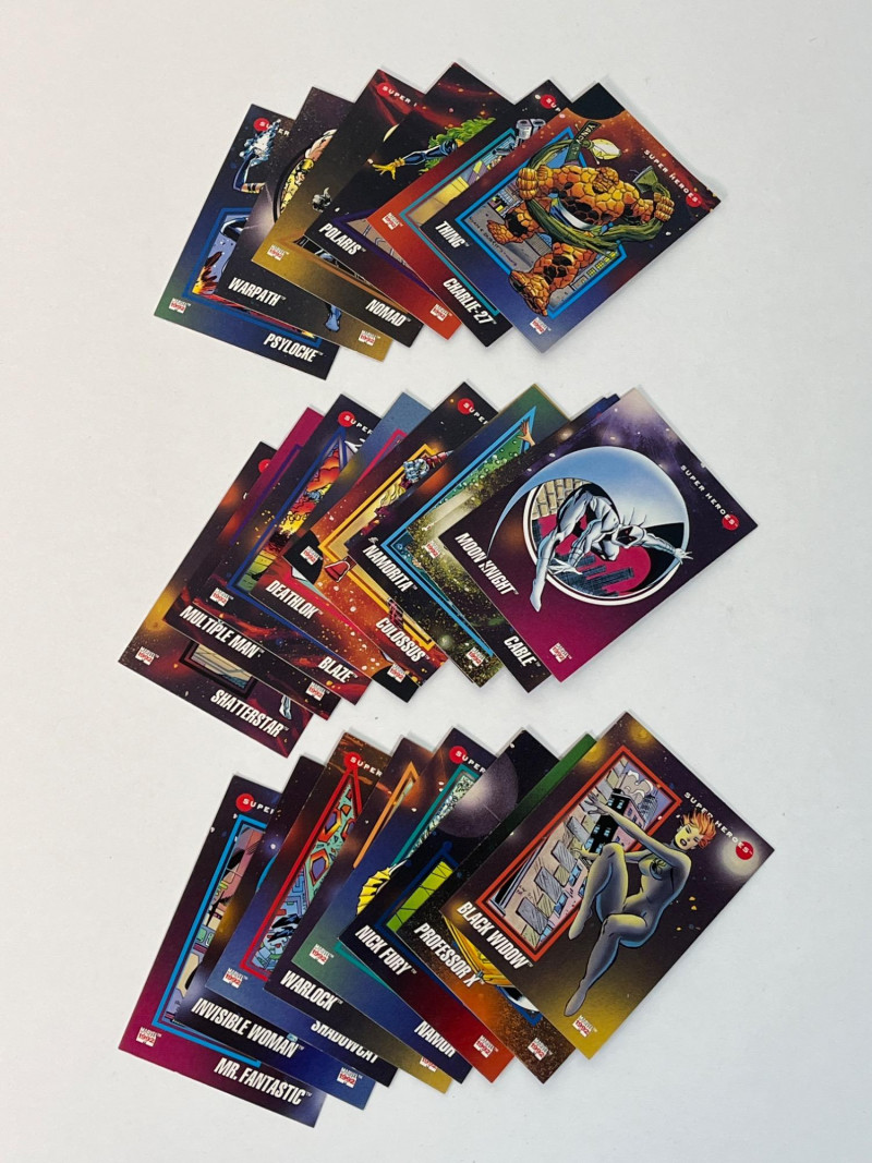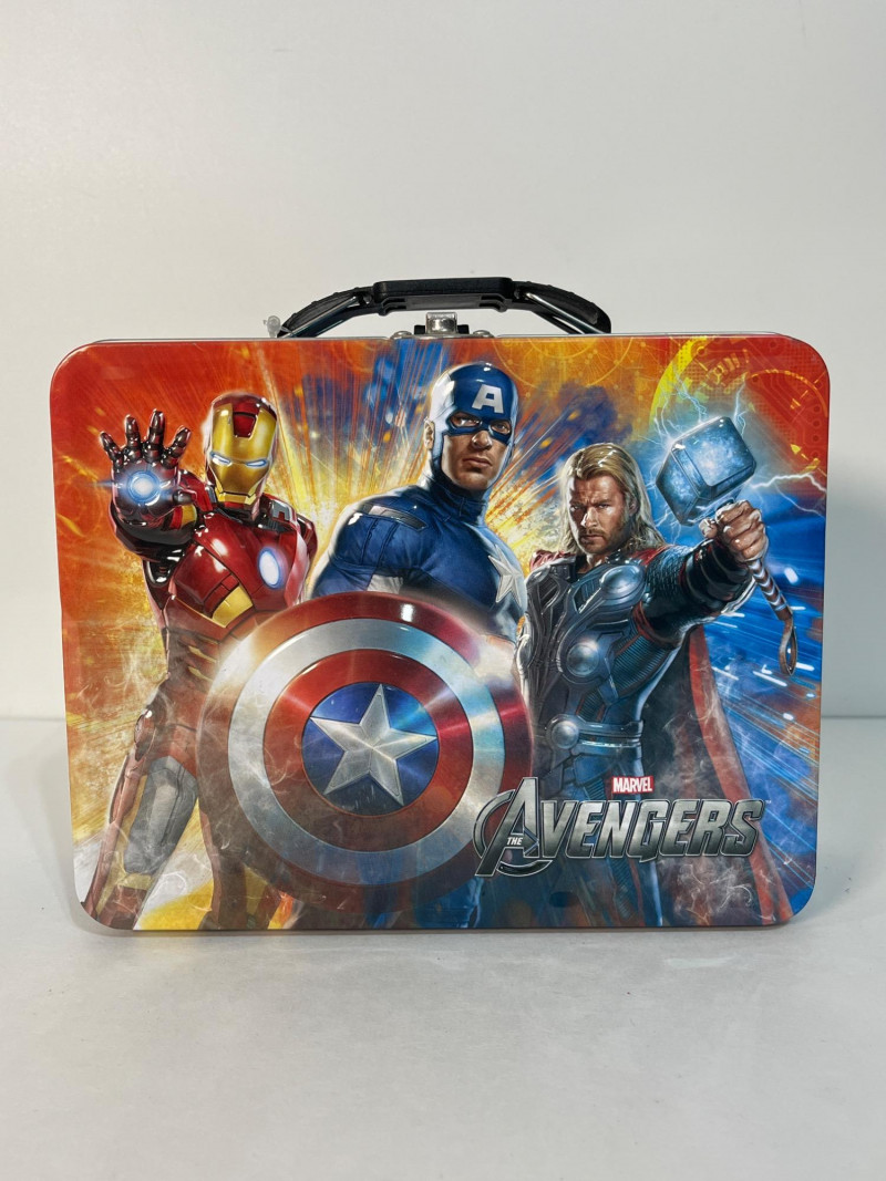 Calling all fans of the Marvel Universe! This lot features vintage styled, metal lunch box, an X-Men comic book, and several small collections of Marvel trading cards. Cards shown in photos are just a small sample and completeness of sets is unknown. Most cards are from the late 90's and many feature a foil finish.