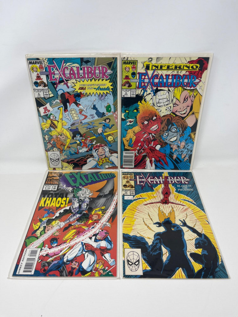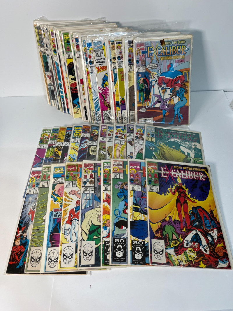 50 Marvel Excalibur comic books from the 1980’s and 90’s. The X-Men, Captain America, Spider Man, The Black Panther, Iron Man… you couldn’t wait for the next issue to see which heroes you’d follow next! These are all boarded and bagged and perfect for collecting or trading!