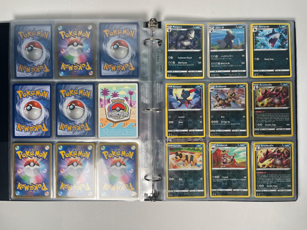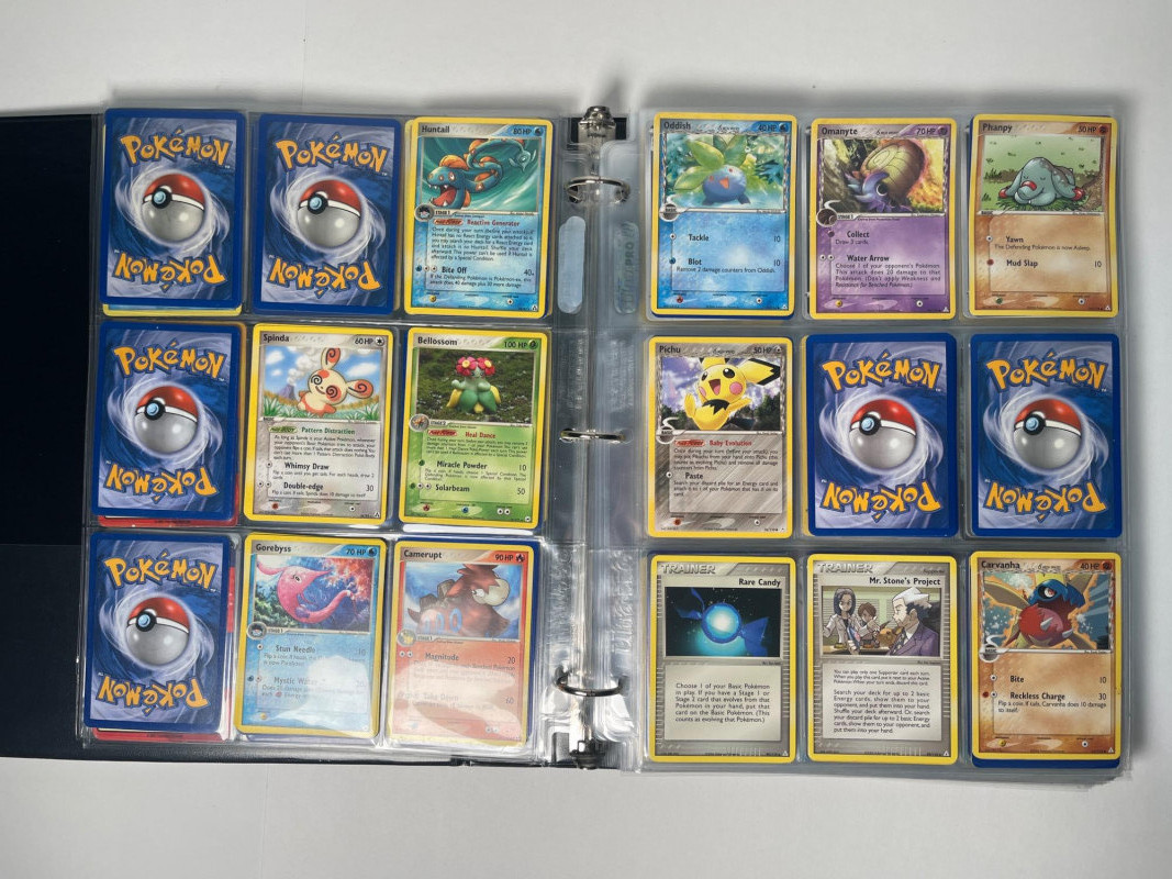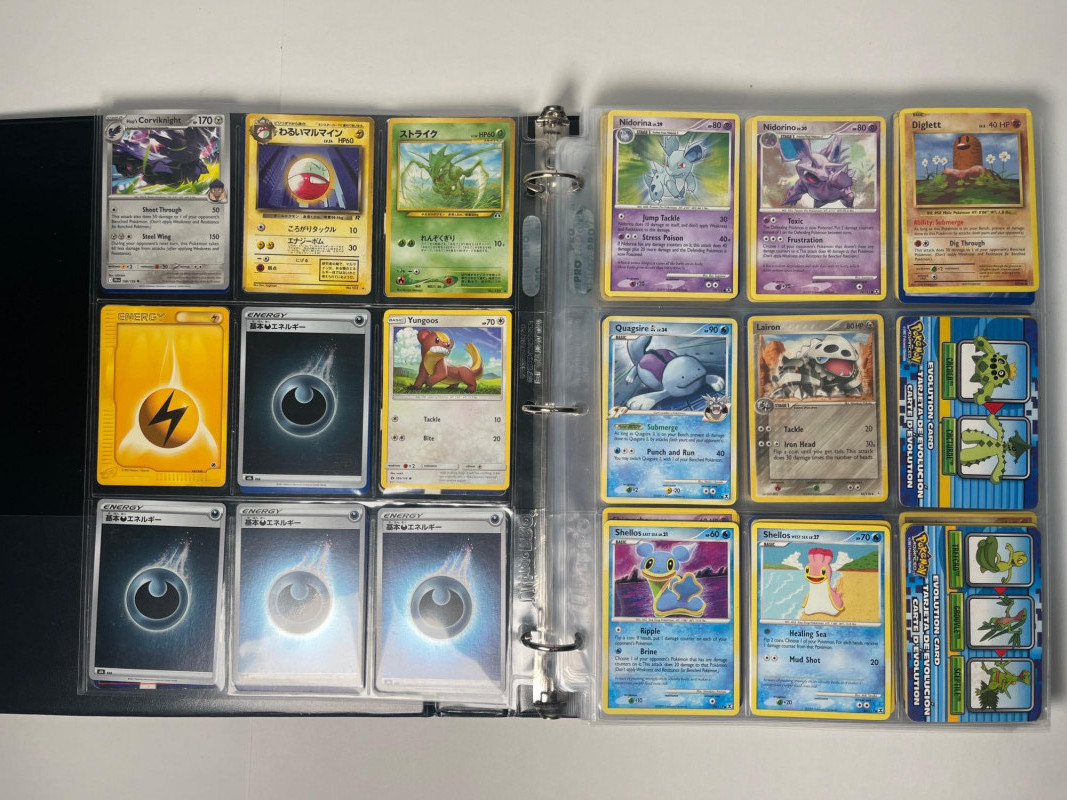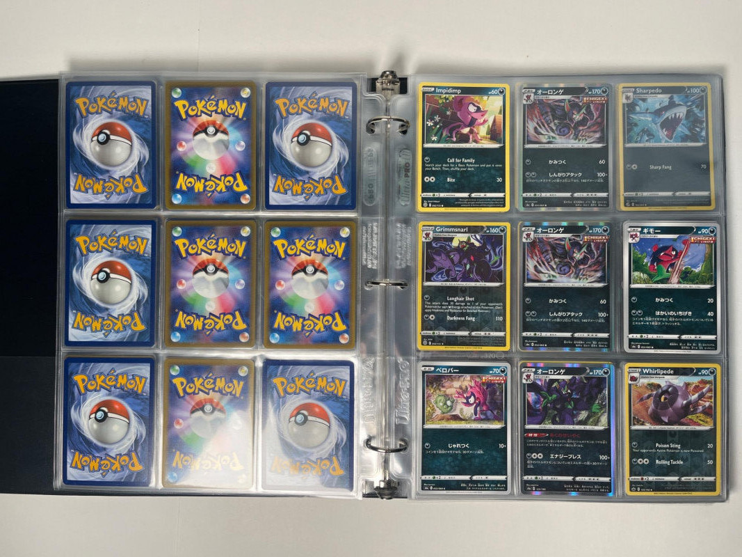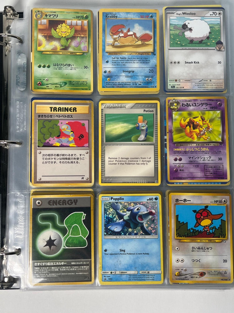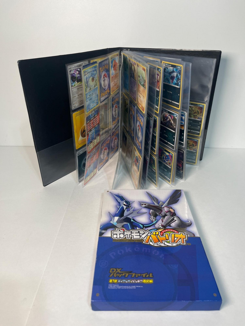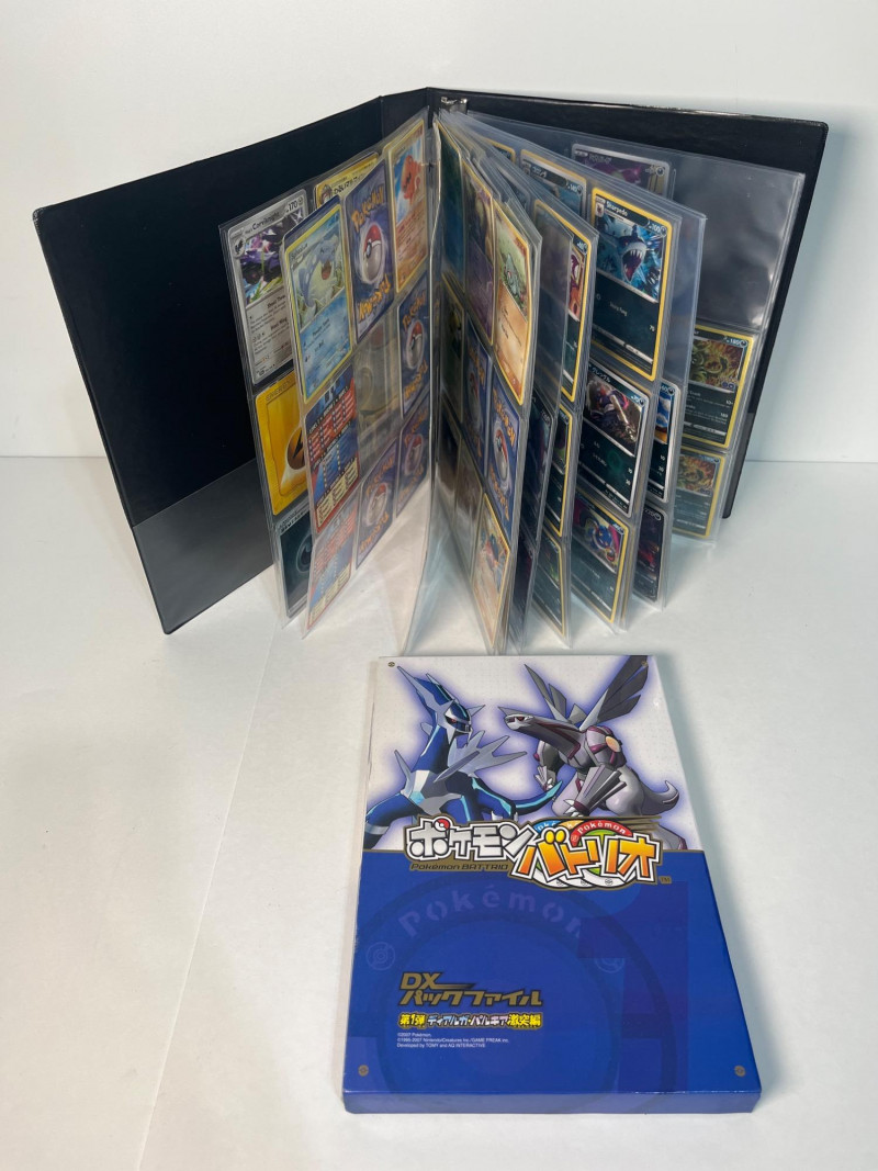 This is a 3-ring binder of Pokemon cards and a DX Battrio Album (empty).The binder has at least 15 pages, not all full, and there are cards in both English and Japanese. Cars years range from the mid 200’s into the 2020’s. Please note that we do not go through trading card sets to assess their completeness. While we do make every effort to describe the exact contents of each lot, we cannot guarantee that a previously opened box contains every card advertised on its label. Unless the description expressly states that a case or box is sealed, please assume that the card set inside is or may be incomplete.