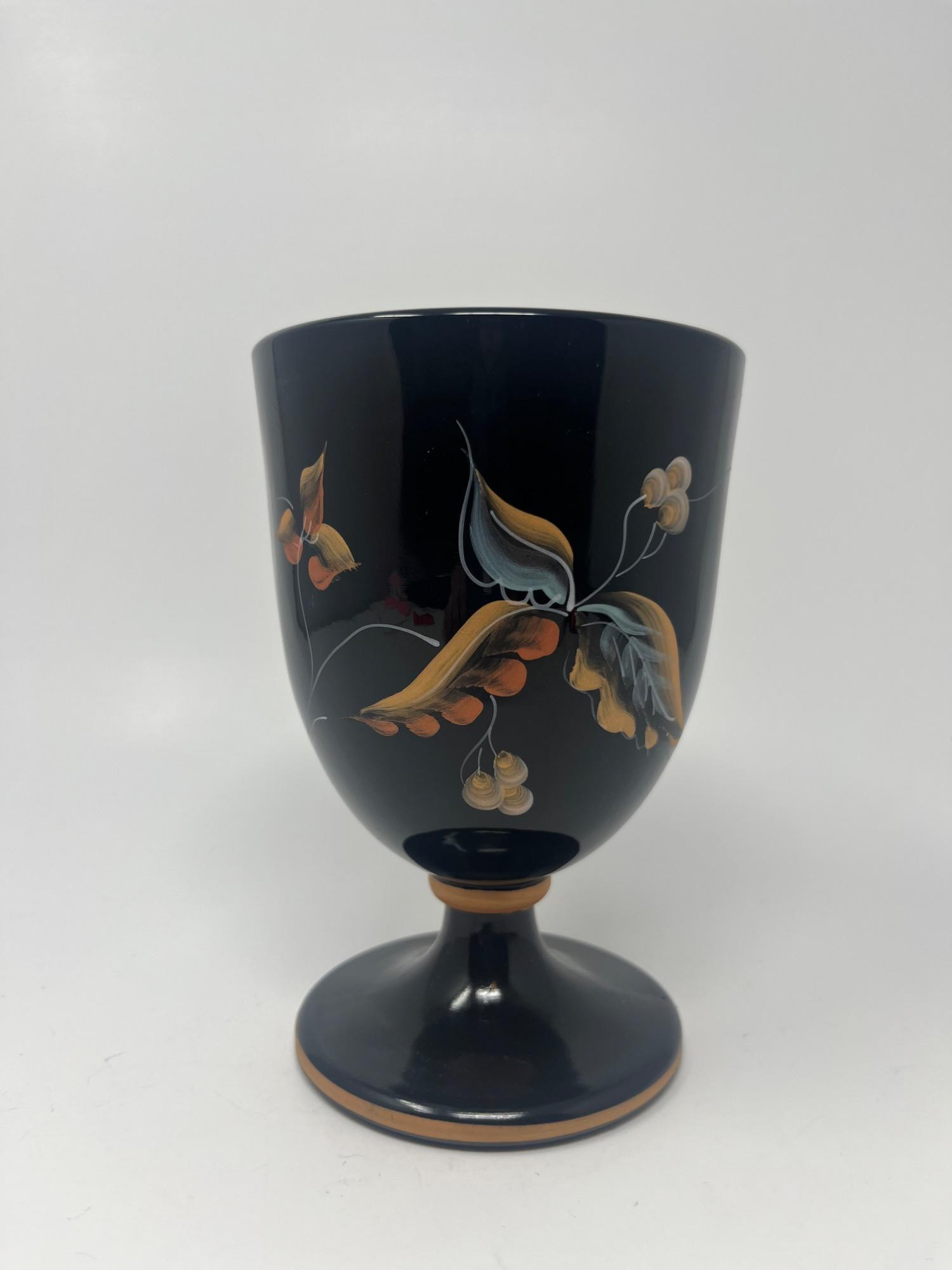 Lot # 65 - Fenton Hand-Painted Black Glass Chalice/Vase – Signed J.K. Spindler
