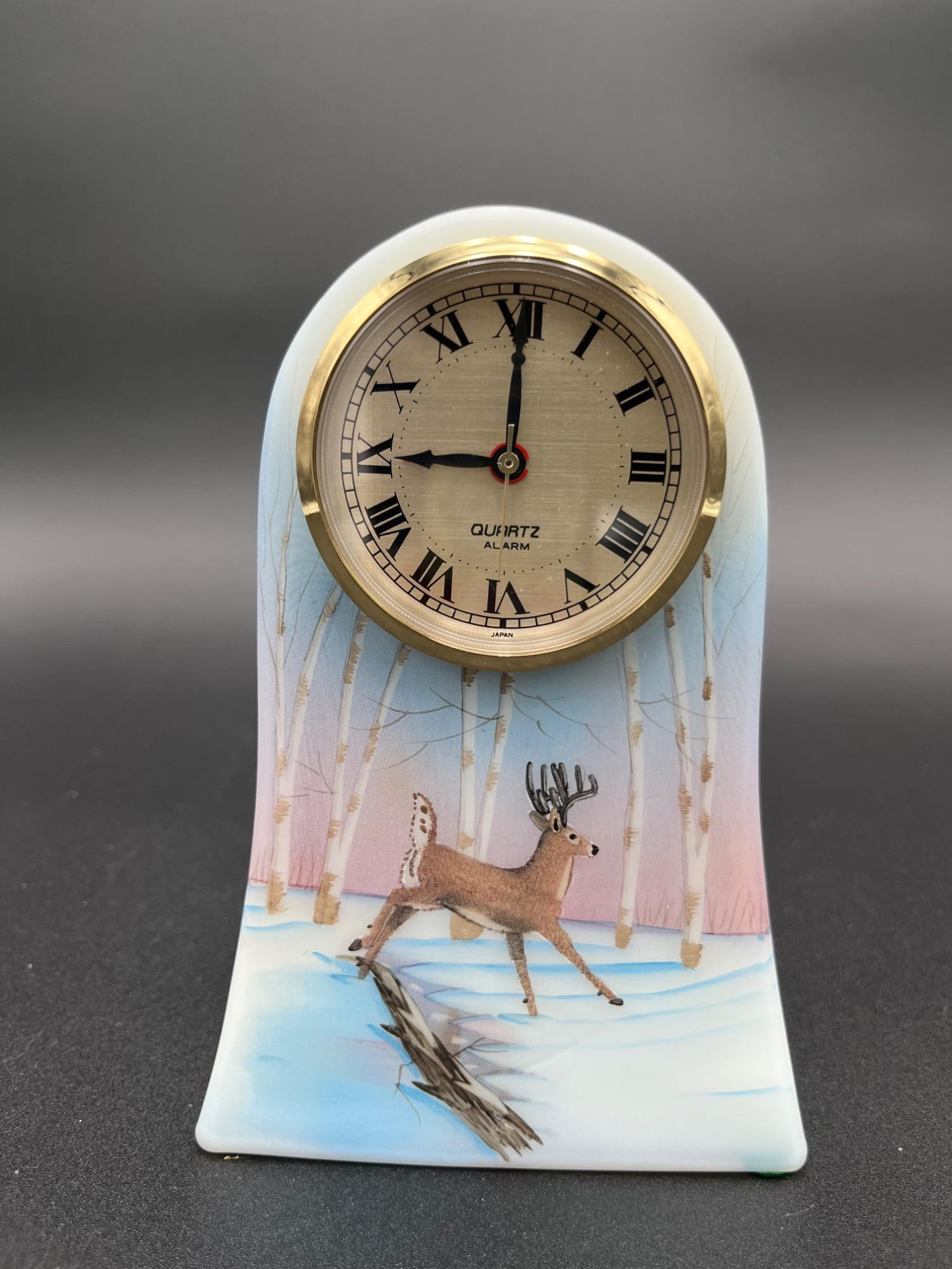 Lot # 100 - Fenton Hand-Painted Deer Clock – Signed Debra Hill, Limited Edition