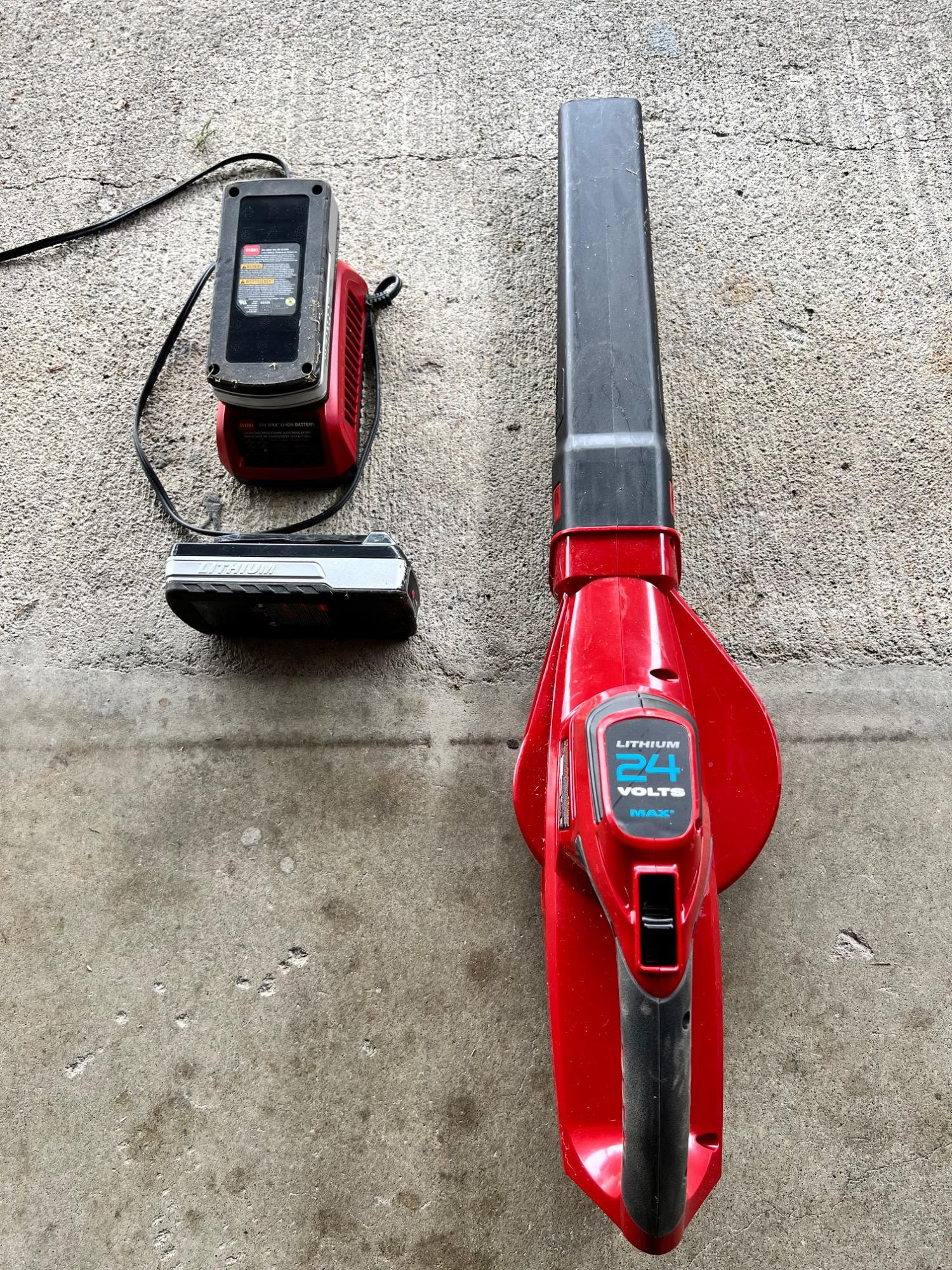 This Toro 24V MAX Lithium-Ion Cordless Leaf Blower is a great tool for clearing leaves, grass clippings, and debris from driveways, sidewalks, patios, and lawns. It’s lightweight, easy to use, and comes with everything needed to get started. Brand: Toro Model: 24V MAX Lithium-Ion Leaf Blower Power: 24V rechargeable lithium-ion battery Includes: Toro 24V MAX Li-Ion Battery Toro 24V Battery Charger Condition: Used, but in good working order with minor signs of wear.