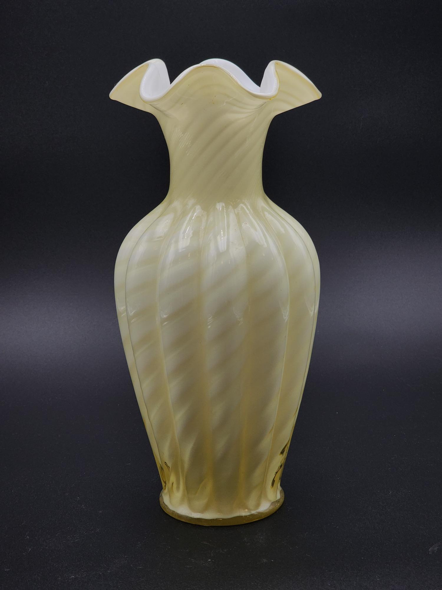 Lot # 118 - Fenton Vase Yellow White Swirl Spiral Crimped Ruffle 11"