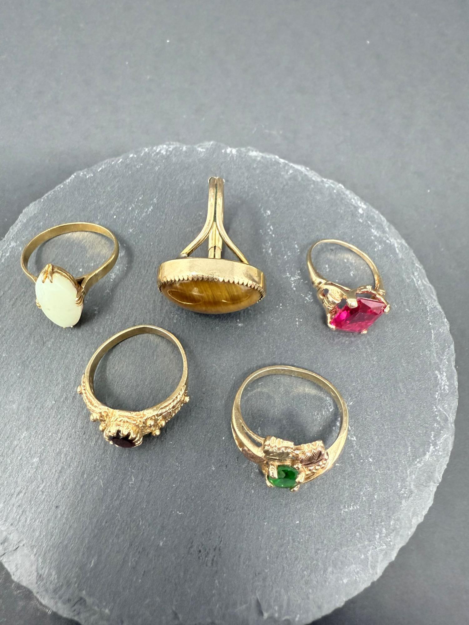 Lot # 189 - Vintage Gold Ring Collection – 5 Unique Gemstone Rings- 10K,14K,18K