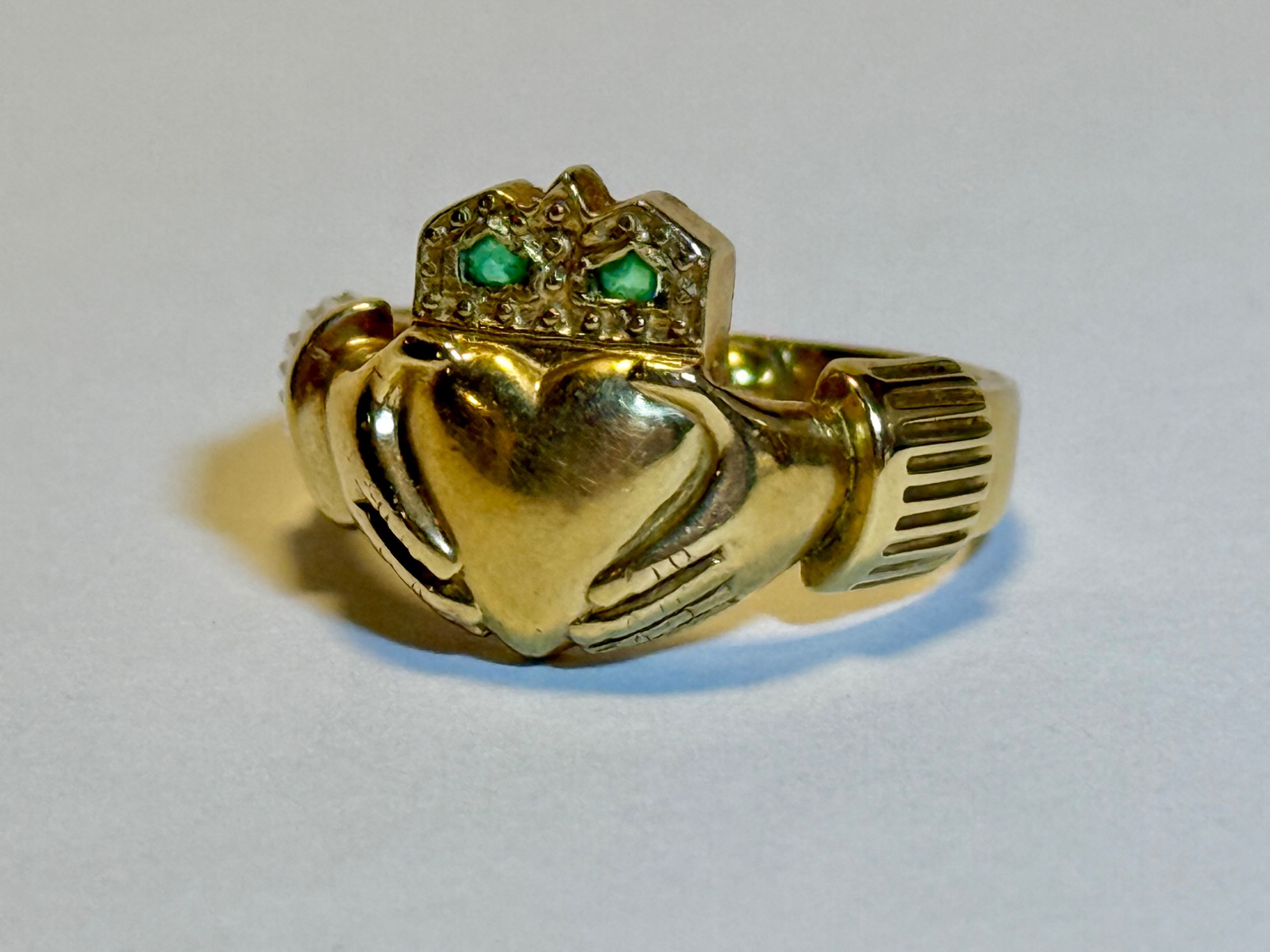 Lot # 3 - 14 K Gold and Emerald Claddagh Ring