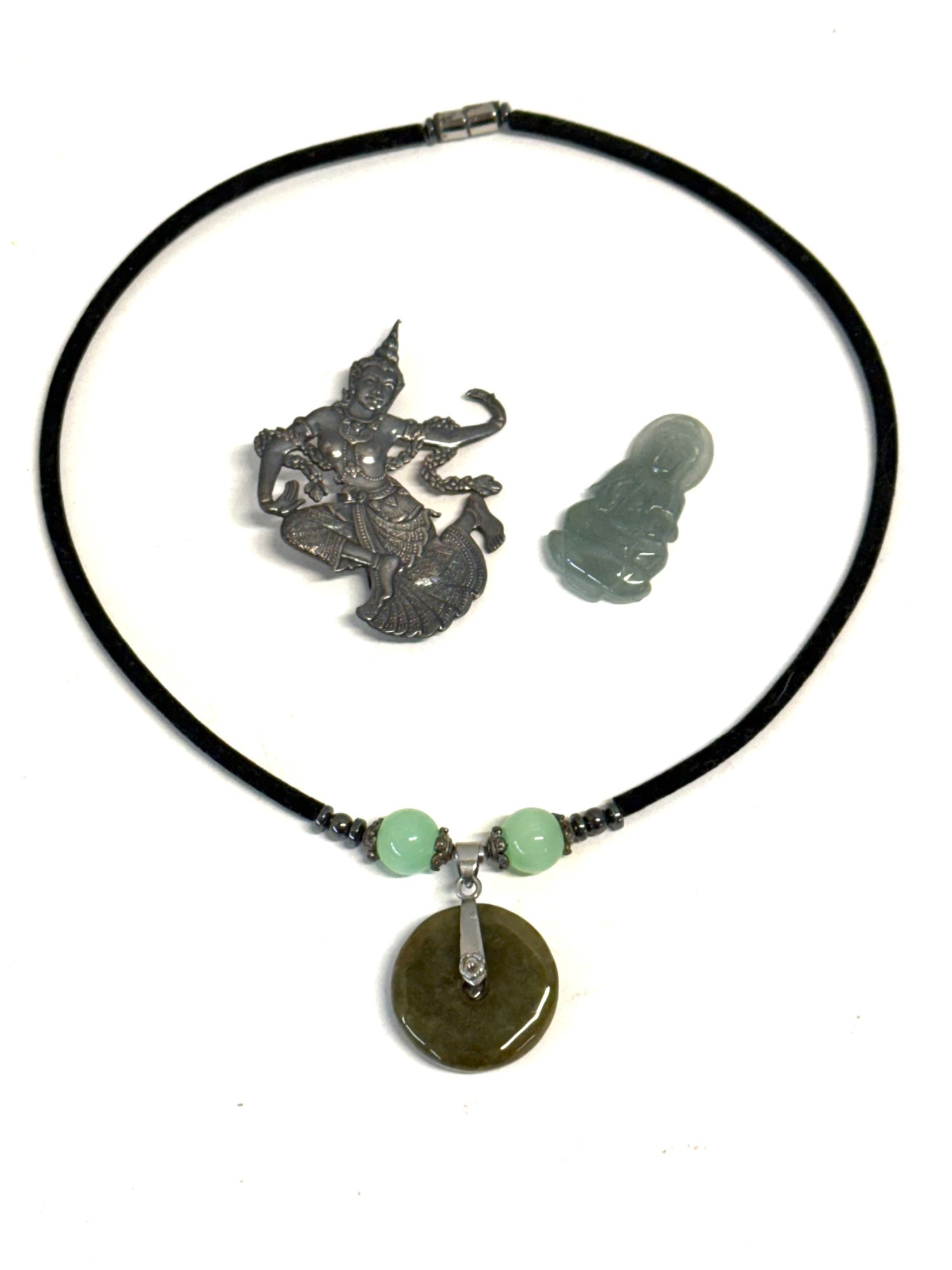 Lot # 166 - Jade necklace, Pendant and Sterling Brooch