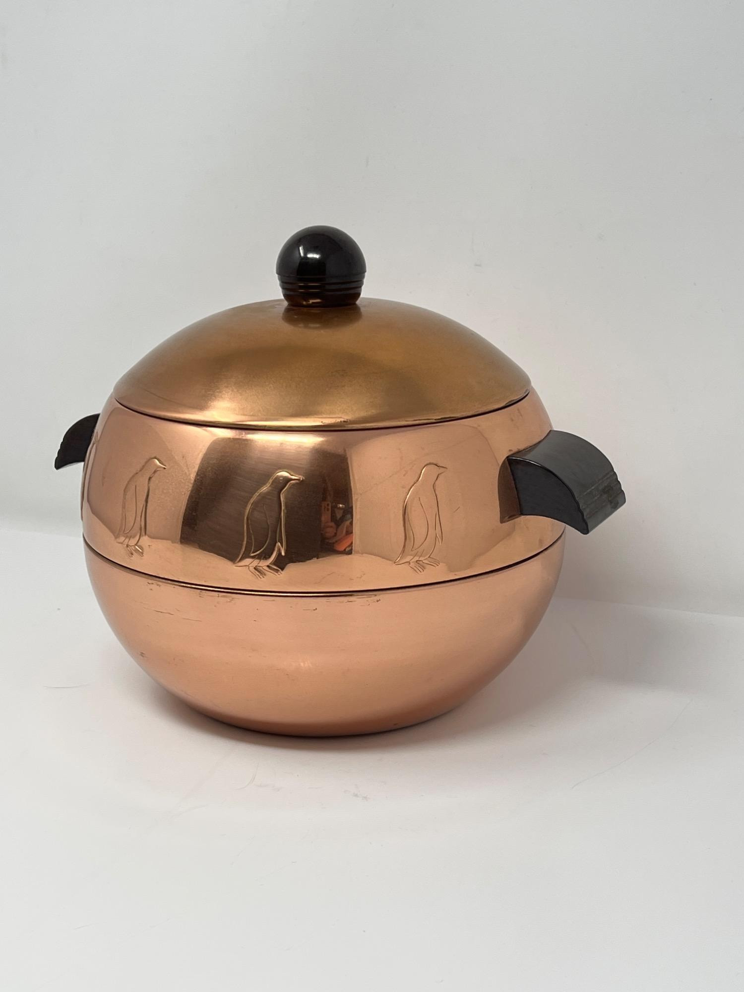 West Bend Aluminum Company insulated copper hot and cold server. Penquin motif. Handled with lid.