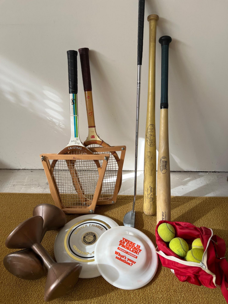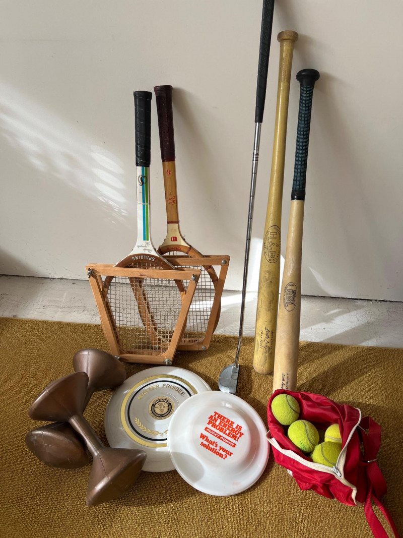 Lot # 171 - 1970s Sports Equipment - Putter, Bats, Rackets, Weights