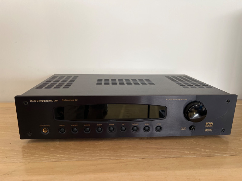 The B&K Components Reference 20 Preamp Controller is a high-quality audio device designed for home theater systems. It supports 5.1 channels, offering surround sound capabilities for an immersive listening experience. This preamp controller is known for its robust build and excellent sound quality. It includes features like digital inputs, subwoofer control, and multi-channel analog inputs for SACD and DVD Audio. Does not have HDMI connectivity, but great for two channel listening or older home theatre systems. No power cord available.
