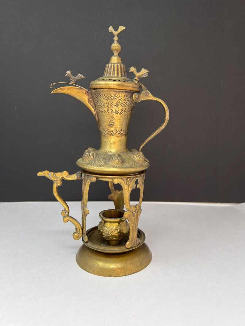 Lot # 181 - Antique Brass Arabic Dallah Coffee Pot with Burner