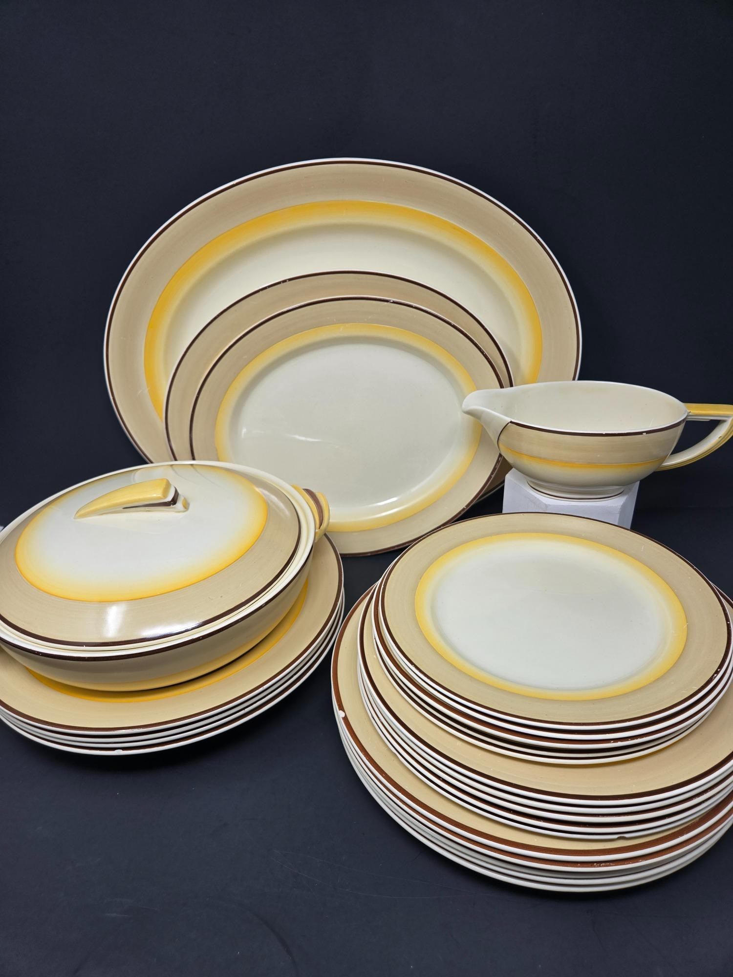 "ETT") is not 1 large 16" Oval, 1 medium oval (cracked), 1 small oval 11", 4 larger soup bowls, 5 large plates (2 chipped),5 medium plates (1 chipped), 3 small plates (1 chipped), 2plates a tad smaller. Please note- chips & cracks on 6 pieces