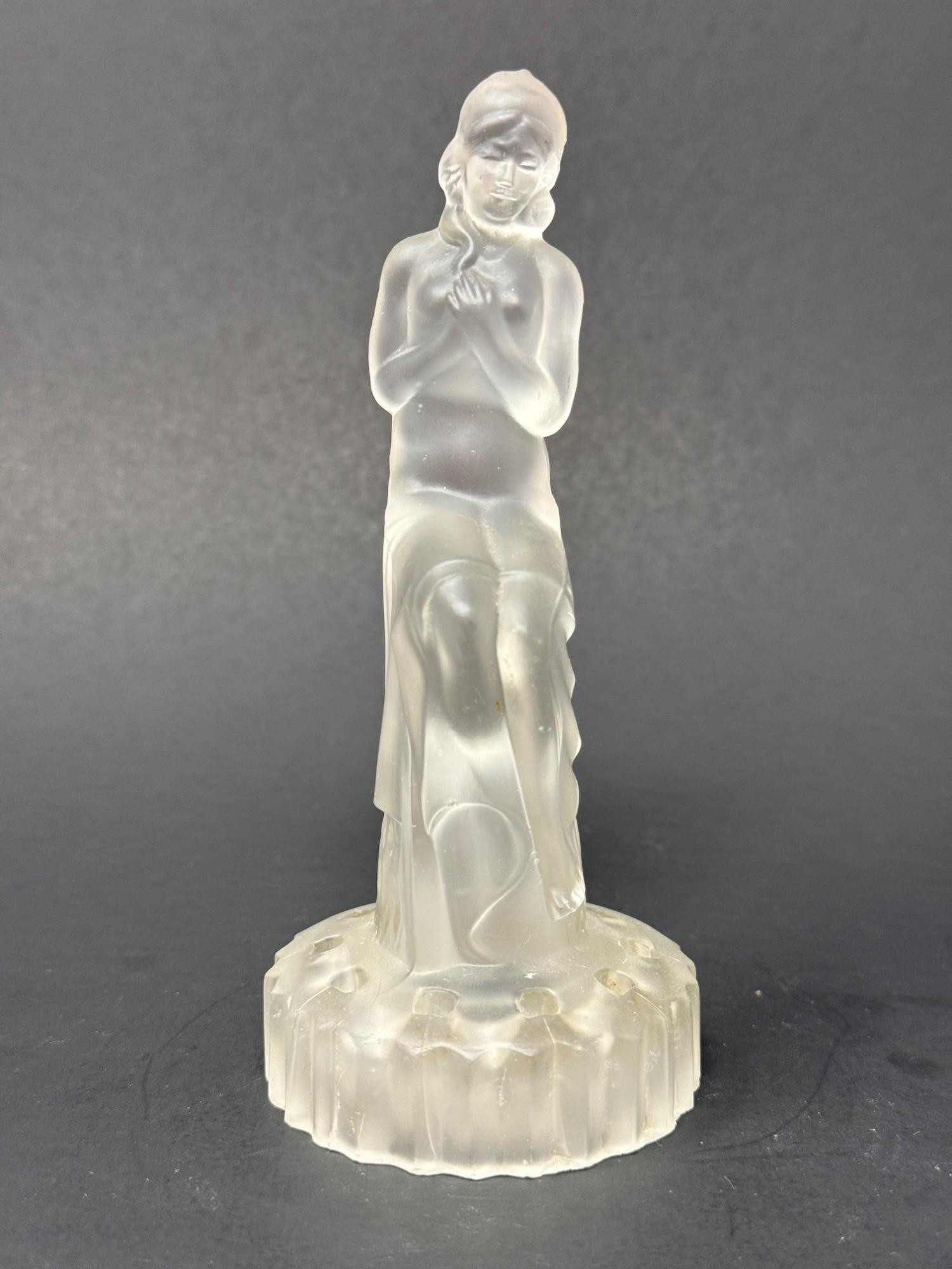 Lot # 27 - Vintage Frosted Glass Flower Frog Figurine – Seated Lady