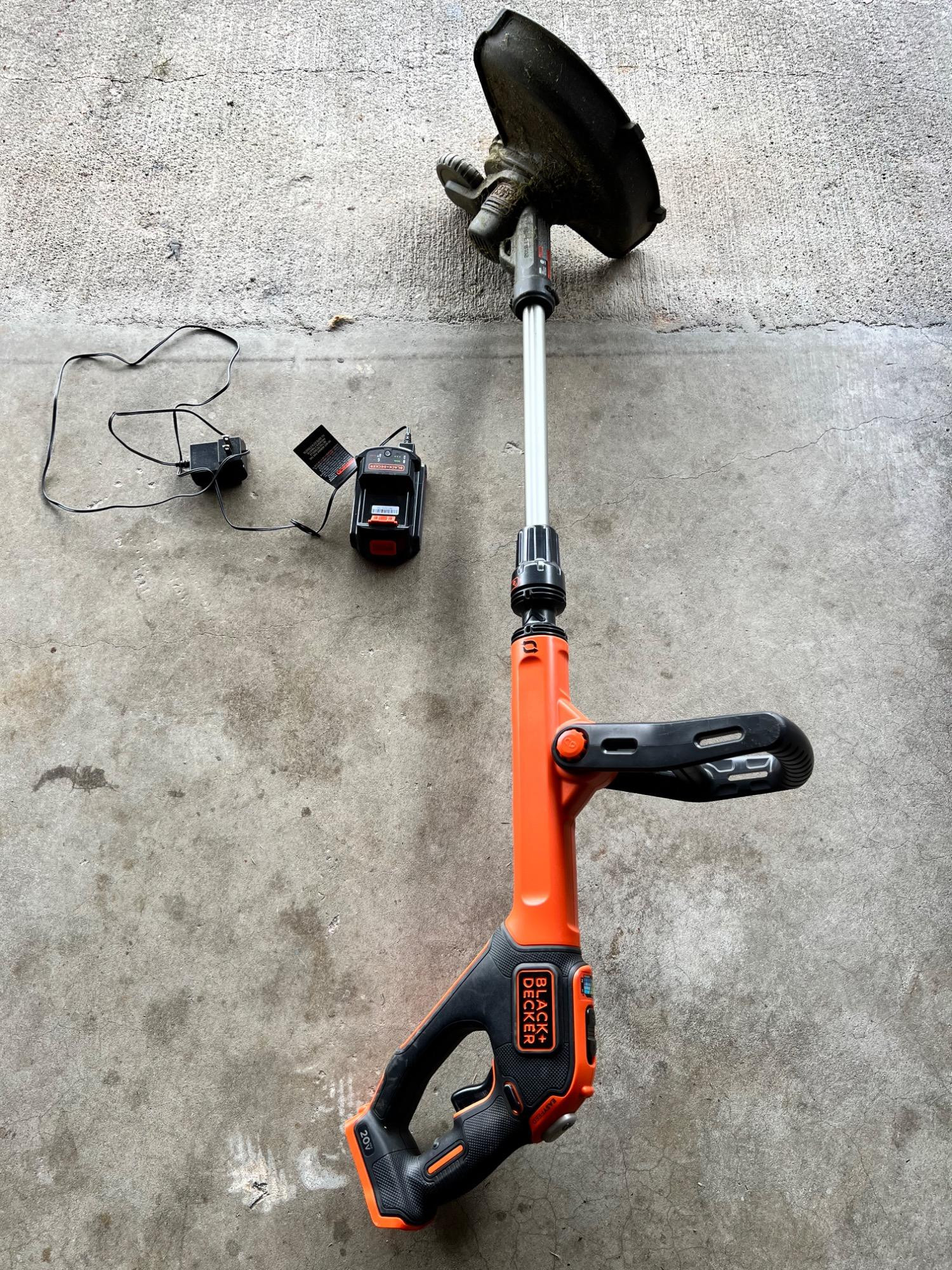 Tidy up your lawn with ease using this Black+Decker 20V MAX Lithium-Ion Cordless String Trimmer/Edger. This lightweight and powerful tool is perfect for trimming weeds, grass, and overgrowth, especially around sidewalks, flower beds, and fences. Key Features: Brand: Black+Decker Power Source: 20V MAX Lithium-Ion Battery (included) Includes: Battery & Charger Adjustable Power Mode: Switch between power level 1 (longer runtime) and 2 (stronger cutting) Automatic Feed Spool (AFS): No bumping required – it feeds the line as needed Condition: Used – fully functional, shows signs of normal wear (see photos)