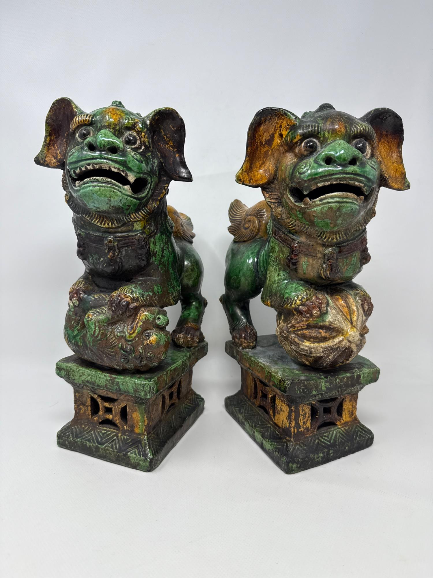 Lot # 11 - Pair of Vintage Chinese Foo Dog Statues