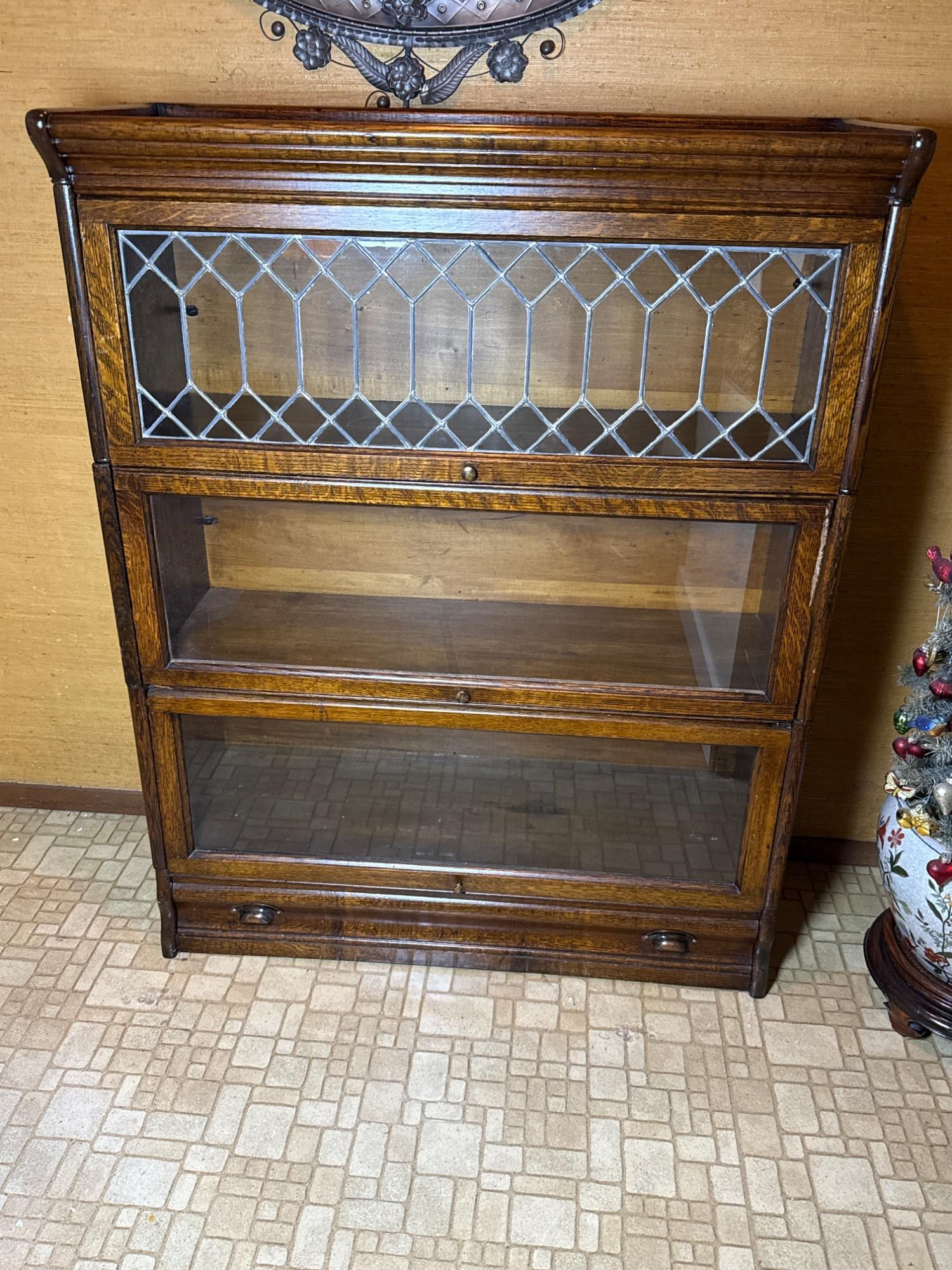 Lot # 23 - Vintage Oak Barrister Bookcase with Leaded Glass Door – 3 Stack