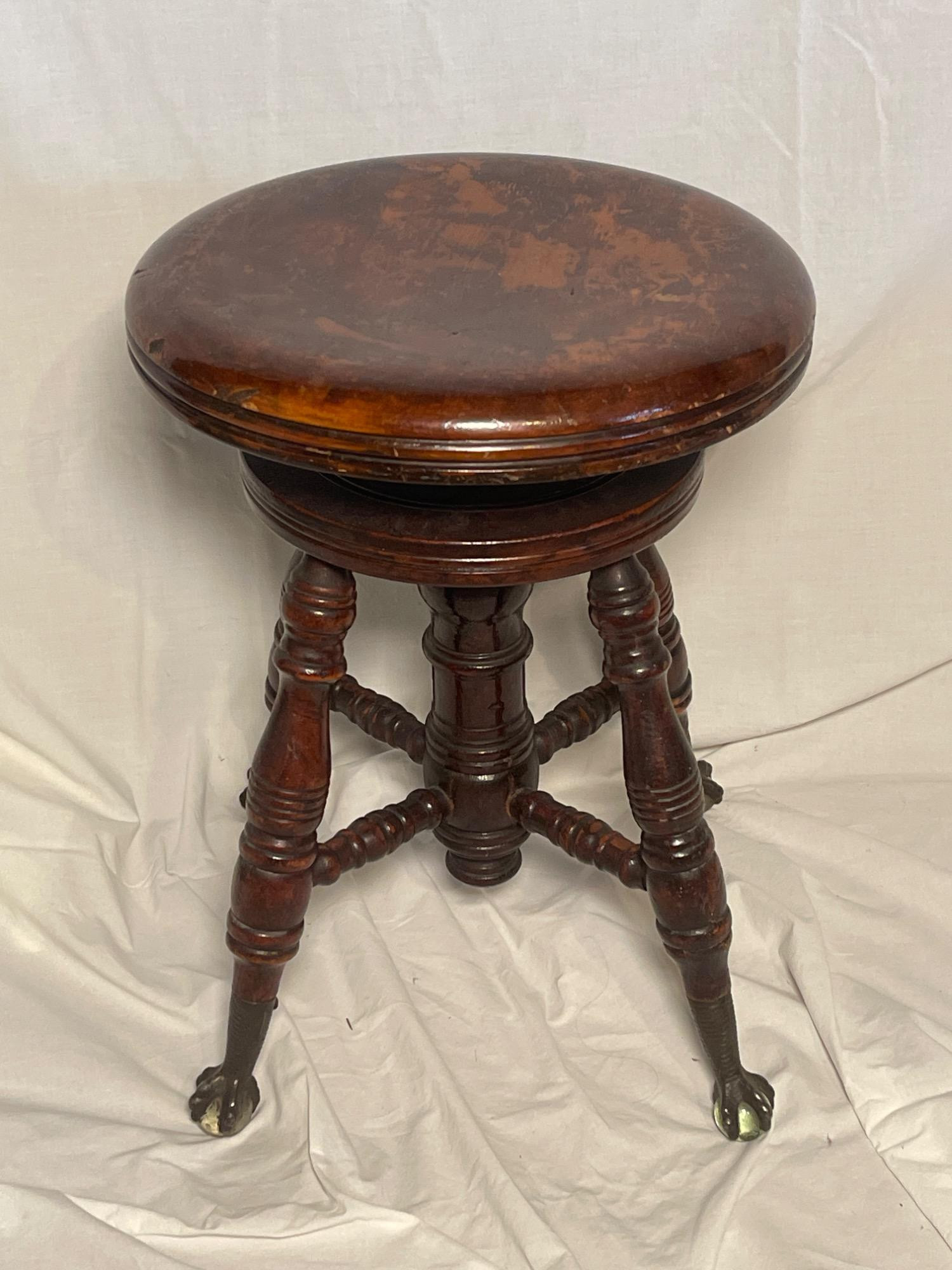 Antique Adjustable Piano Stool – Glass Ball & Claw Feet