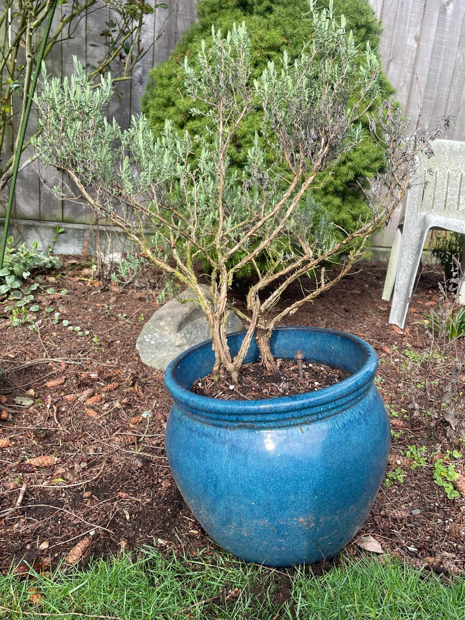 Lot # 129 - Blue Ceramic Garden Pot with Rosemary Bush – Gloss Glaze Finish