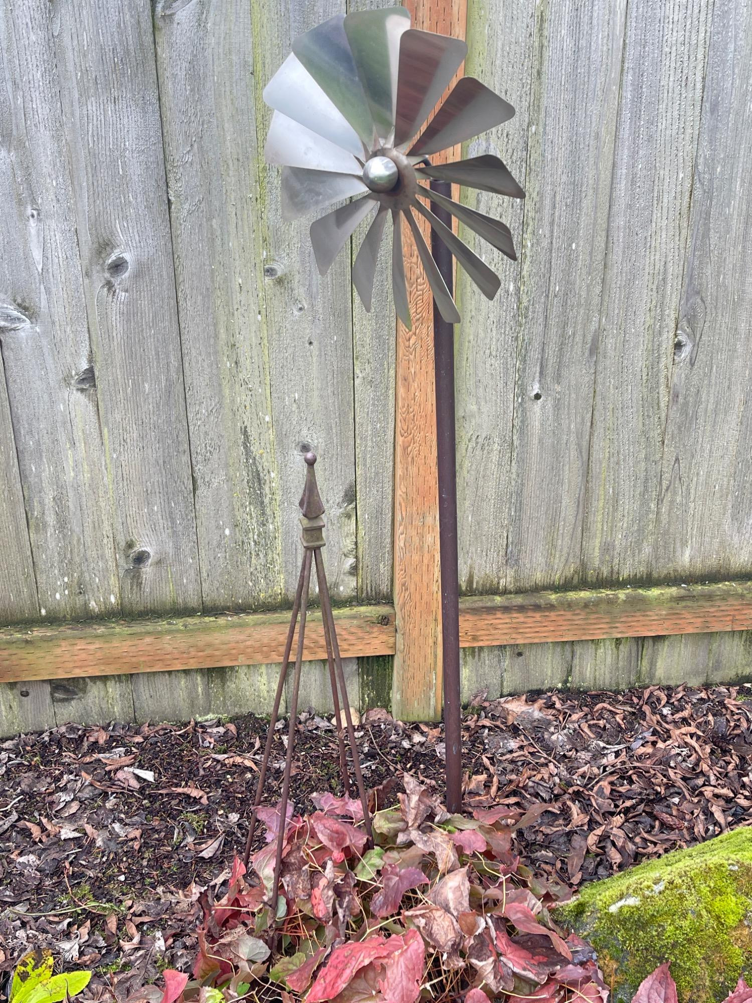 Lot # 142 - Metal Yard Art Duo – Windmill & Obelisk Style Plant Support