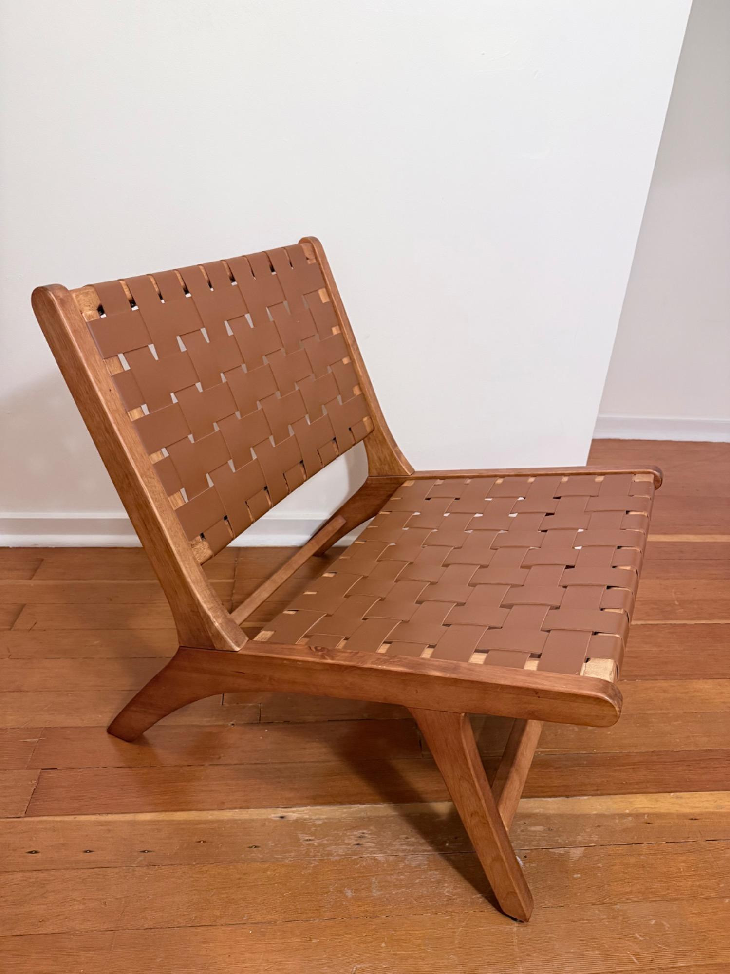 Woven Leather Accent Chair Side Chair-Leather/Wood 30 D x 28 T x 16-11” Slope for seat Height 25.5 W