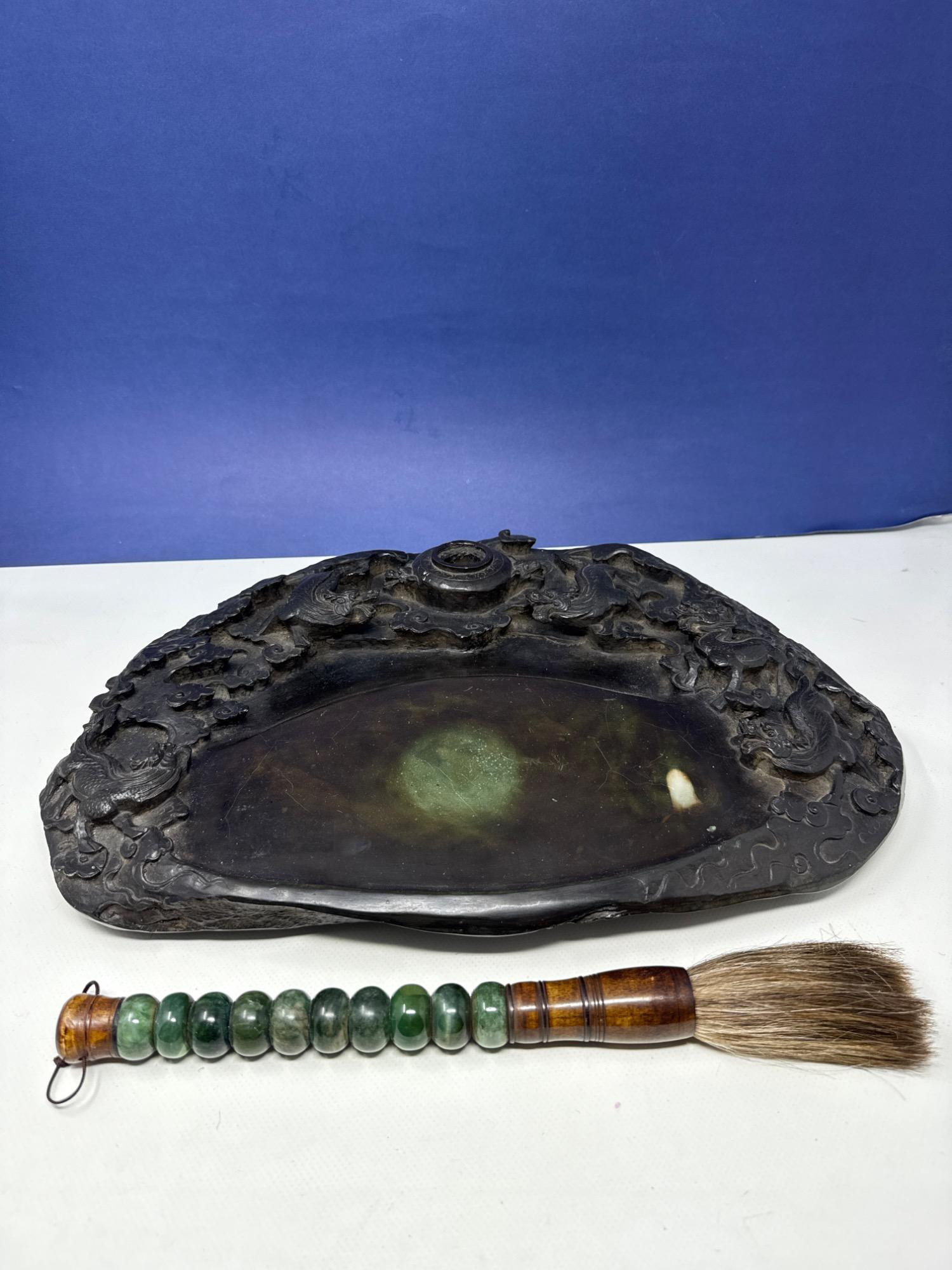 Lot # 5 - Japanese Suzuri Inkstone with Jade Horse Hair Brush