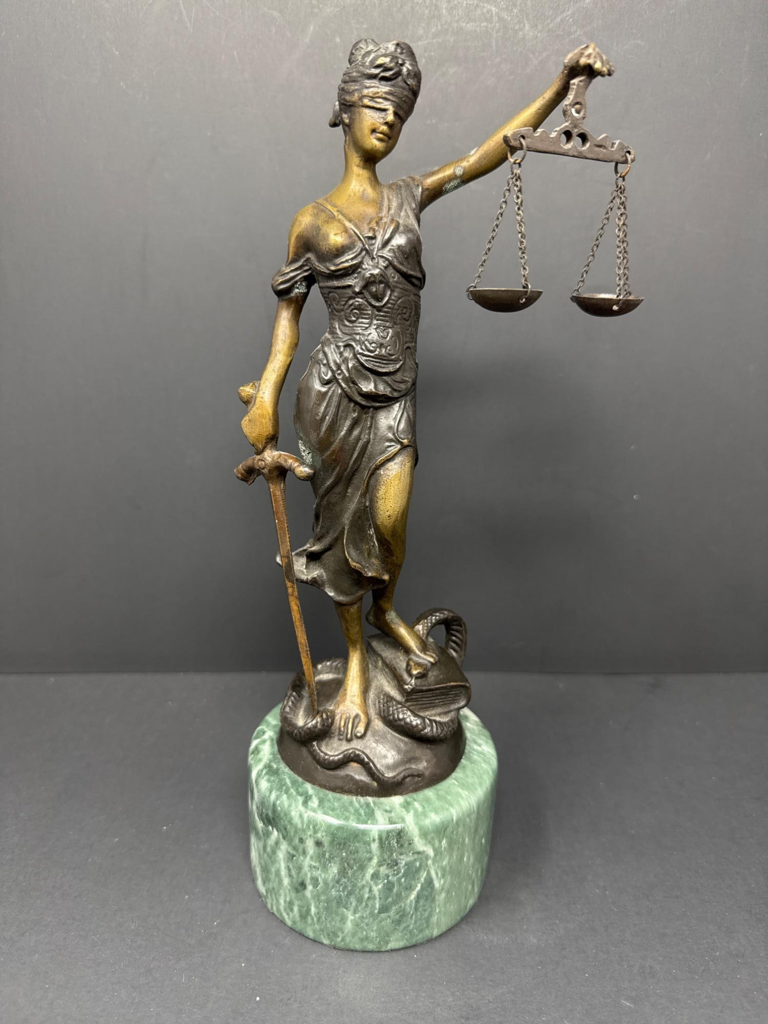 Lot # 7 - Lady Justice Bronze-Style Statue with Green Marble Base