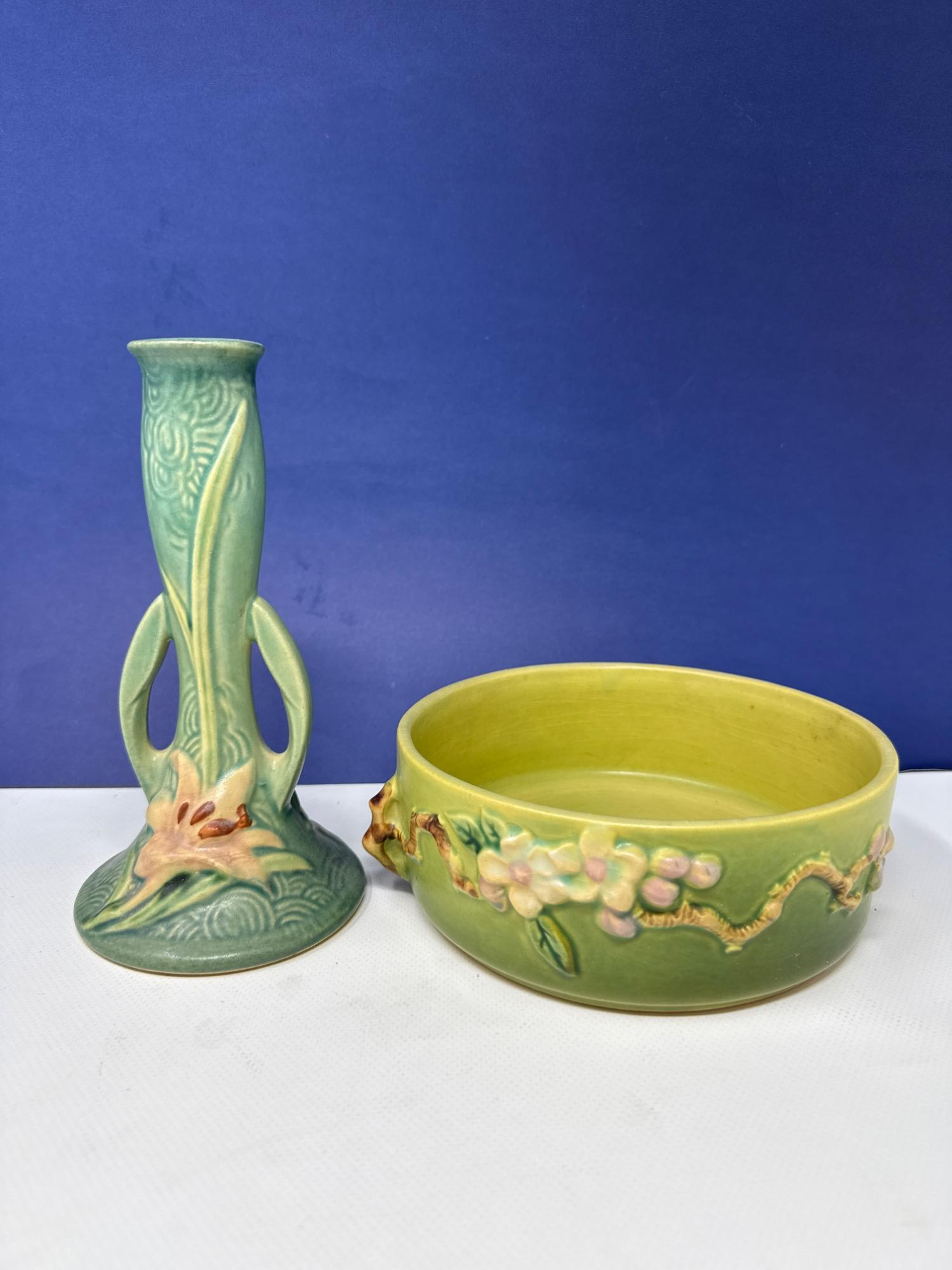 Lot # 29 - Vintage Roseville Pottery Vase and Bowl Set – Floral Design
