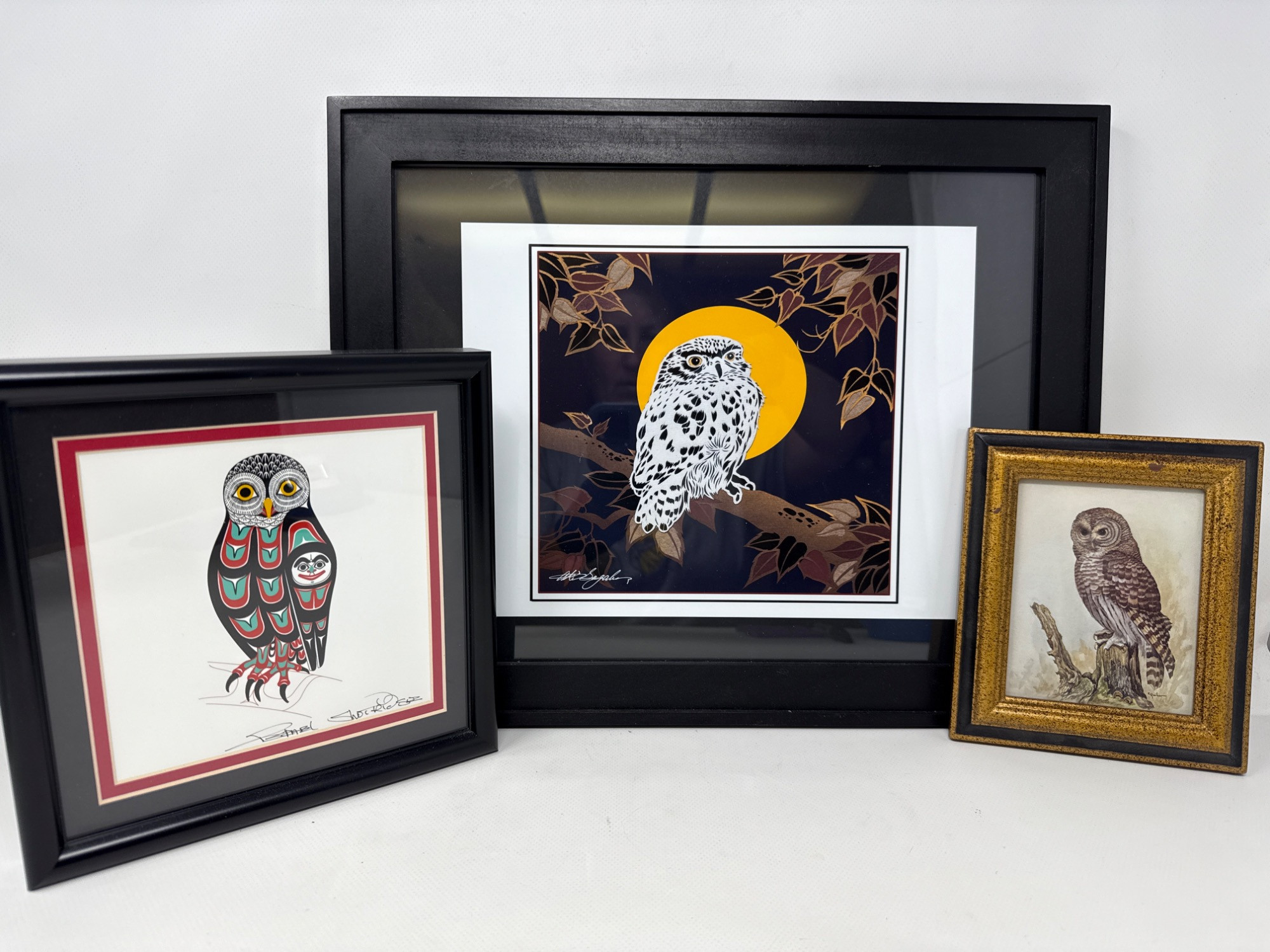 Lot # 44 - Trio of Framed Owl Art – Aki Sogabe, Israel Shotridge & E. Rambow