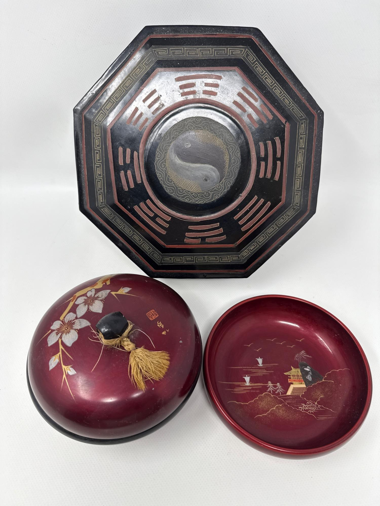 Lot # 71 - Vintage Bagua Lacquer Jewelry Box & Maruniware Bowl Set
