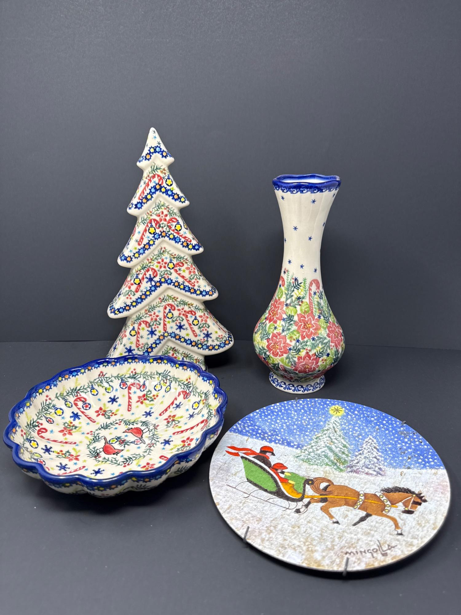 Lot # 44 - Holiday Decor Set – Polish Pottery and Mingolla Plate
