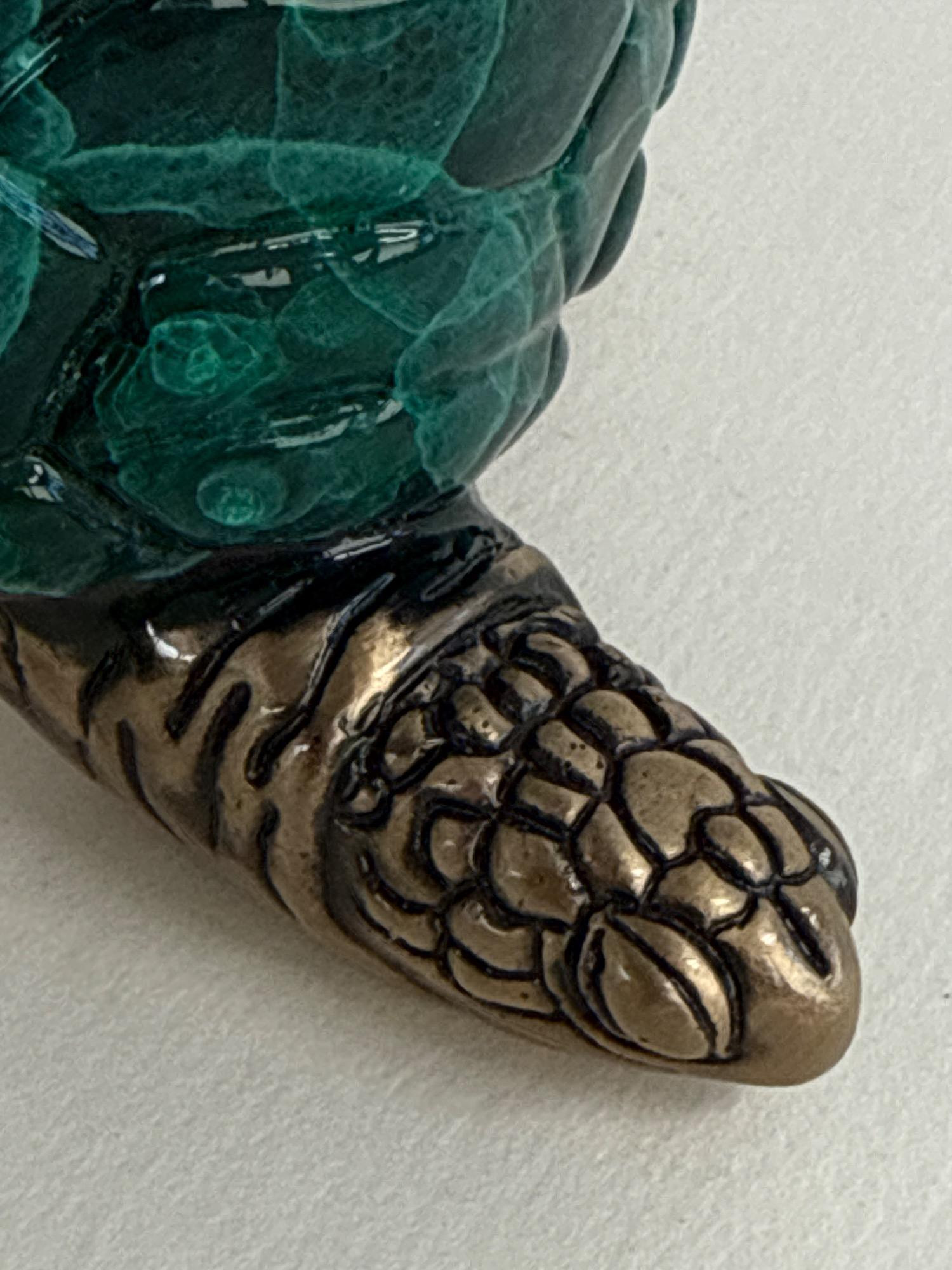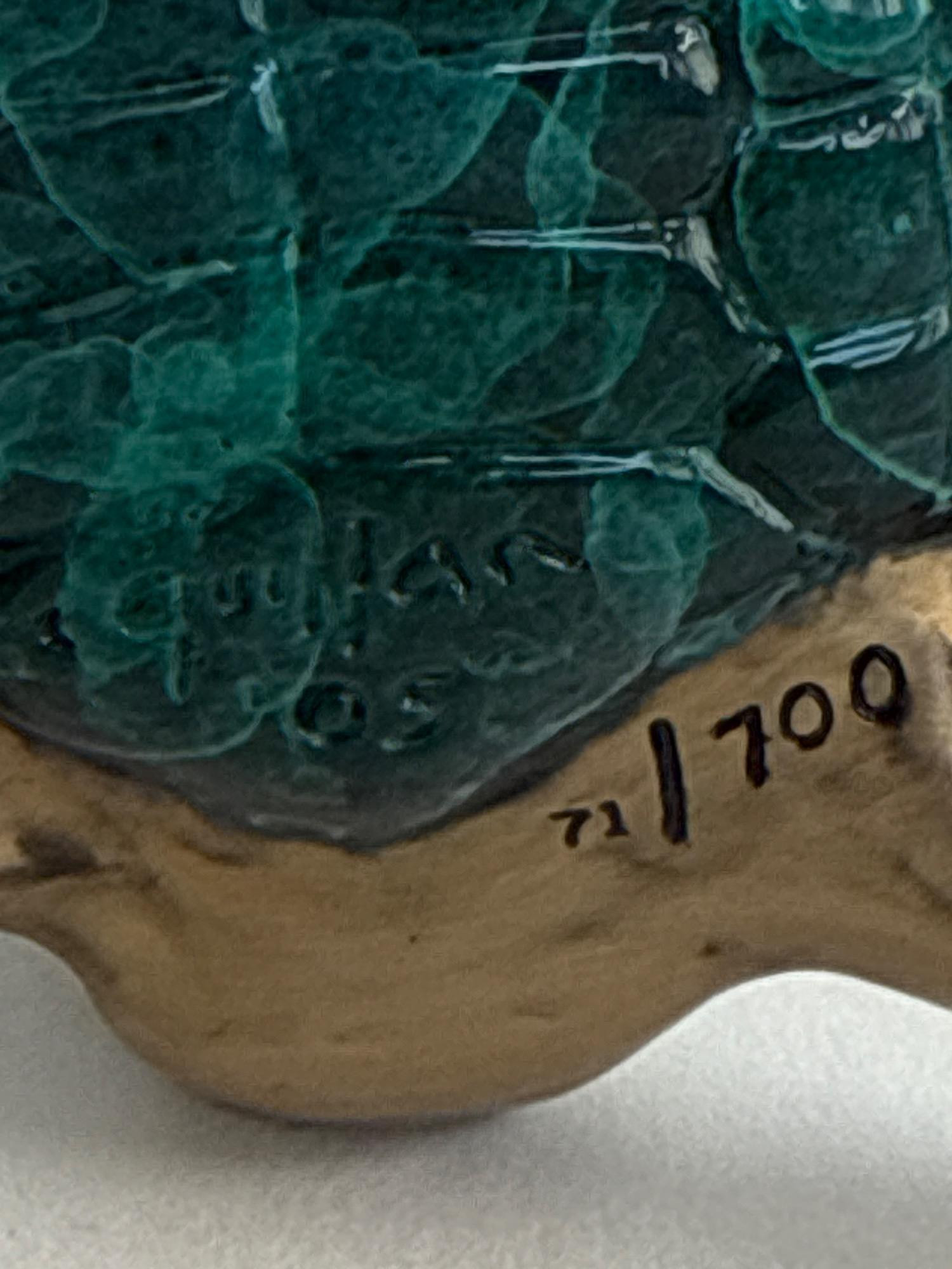 Add charm and artistry to your collection with “Tipsy,” a whimsical bronze turtle sculpture handcrafted by renowned artist Joseph Quillan. This delightful piece is part of Quillan’s Turtles & Frogs Fine Art Bronze Sculpture series, known for its lifelike details and playful spirit. Title: Tipsy Medium: Limited Edition Bronze Sculpture Edition Number: 071 of 700 Total Edition Size: 770 (including 70 Artist Proofs) Dimensions: 4"T x 5"W Signature: Hand-signed and numbered by the artist Included: Certificate of Authenticity