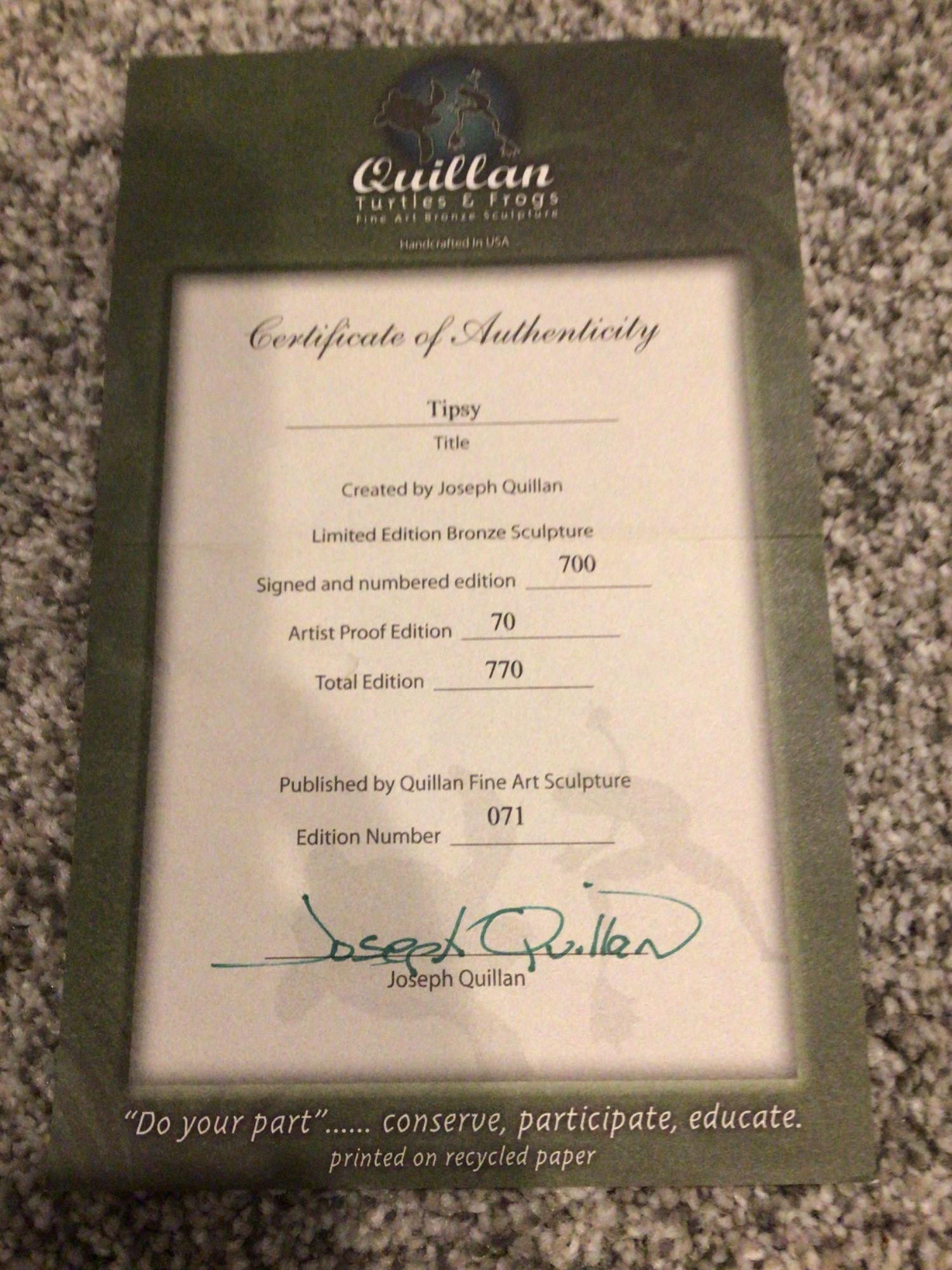 Lot # 40 - Joseph Quillan “Tipsy” Bronze Turtle Sculpture – Limited Edition