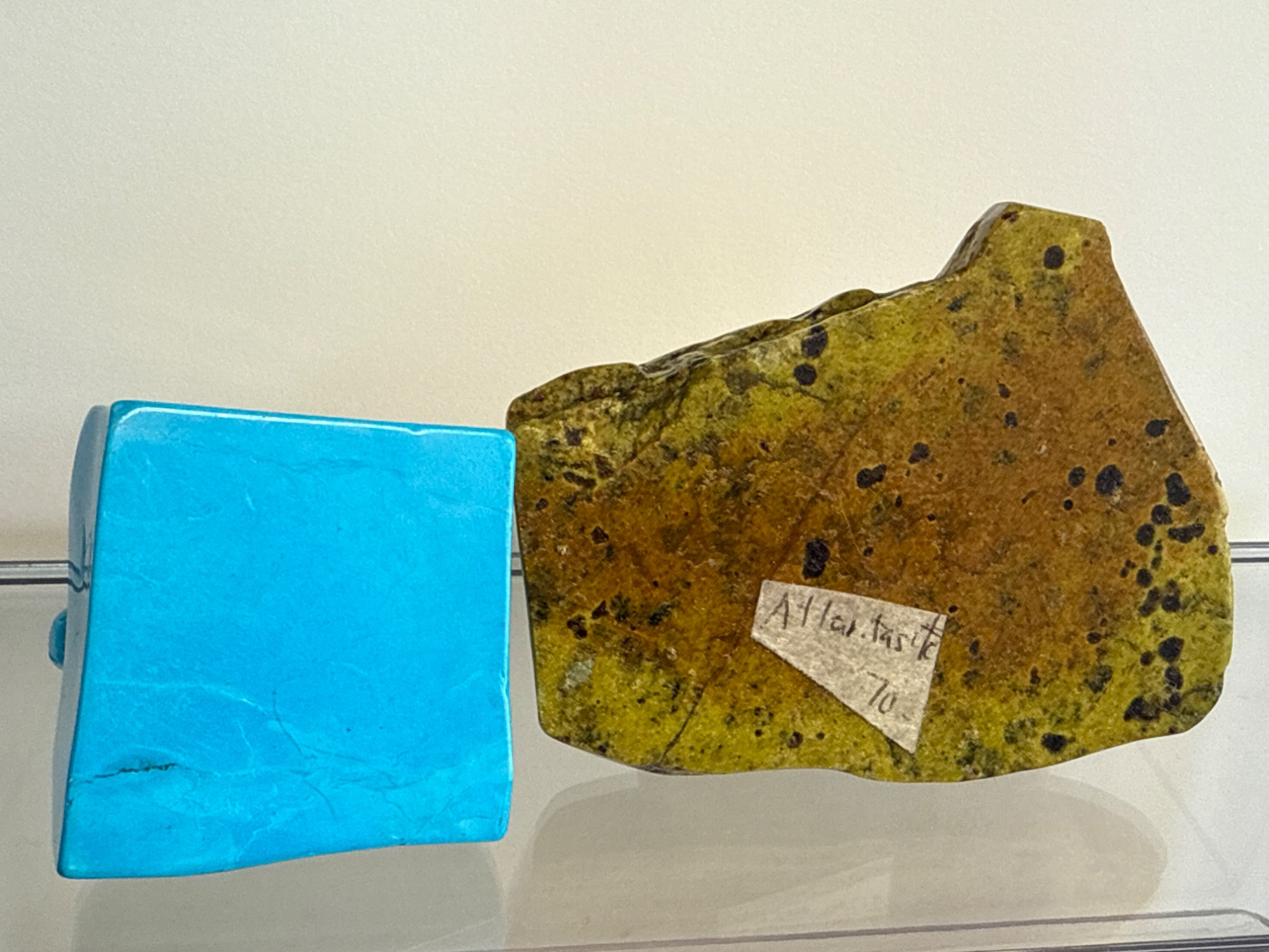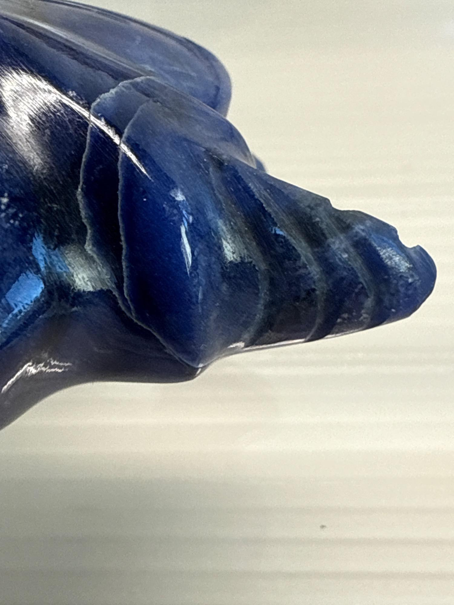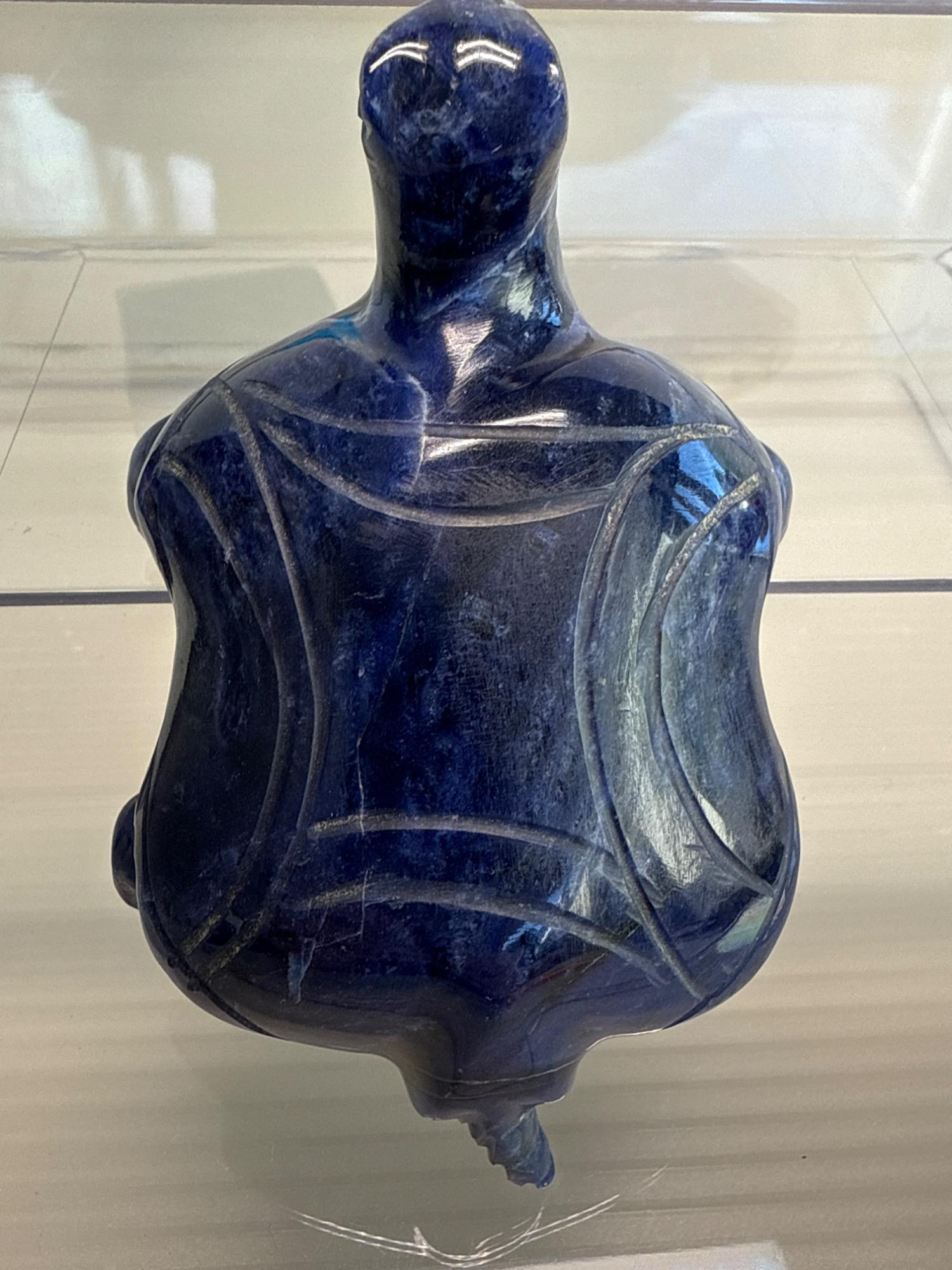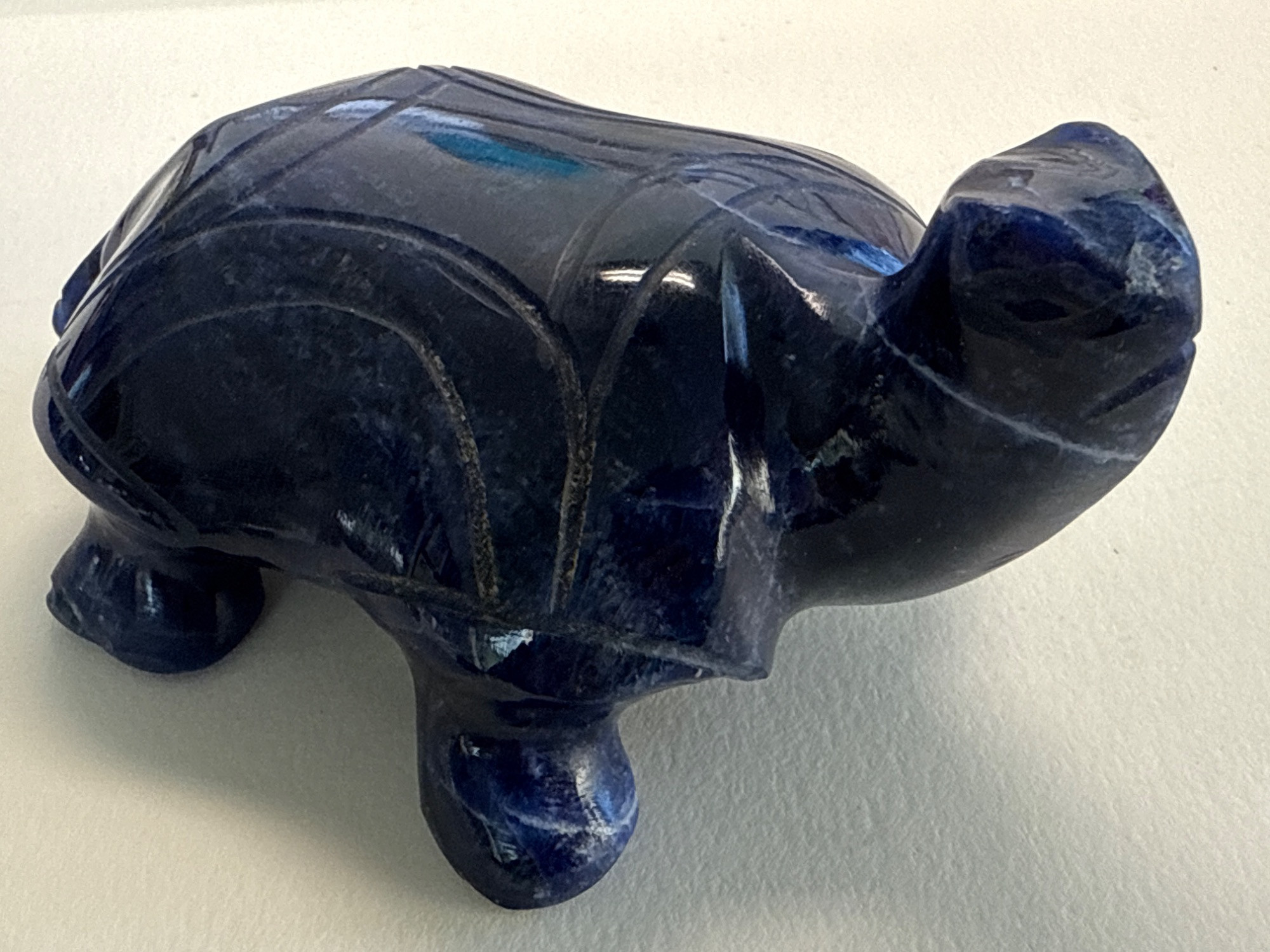 Add a charming and earthy touch to your space with this beautiful trio of hand-carved turtle sculptures, each crafted from distinct natural stone: Chinese Blue Jade Turtle – Deep blue tones with graceful curves and a smooth finish. Measures approx. 4.75" long, 2" tall, and 3" wide. Labeled and valued at $250 (tag included). Green Serpentine Turtle – Rich, marbled green coloring with detailed carving, resting on a naturalistic base. Dimensions: 3.75" long, 3" wide, 1.5" tall. Sticker on base reads “Altar Turtle - 70”. Blue Howlite Turtle – Vivid turquoise-like hue with squared-off base. Compact and eye-catching. Measures 2" long, 1.75" tall, and 2" wide.