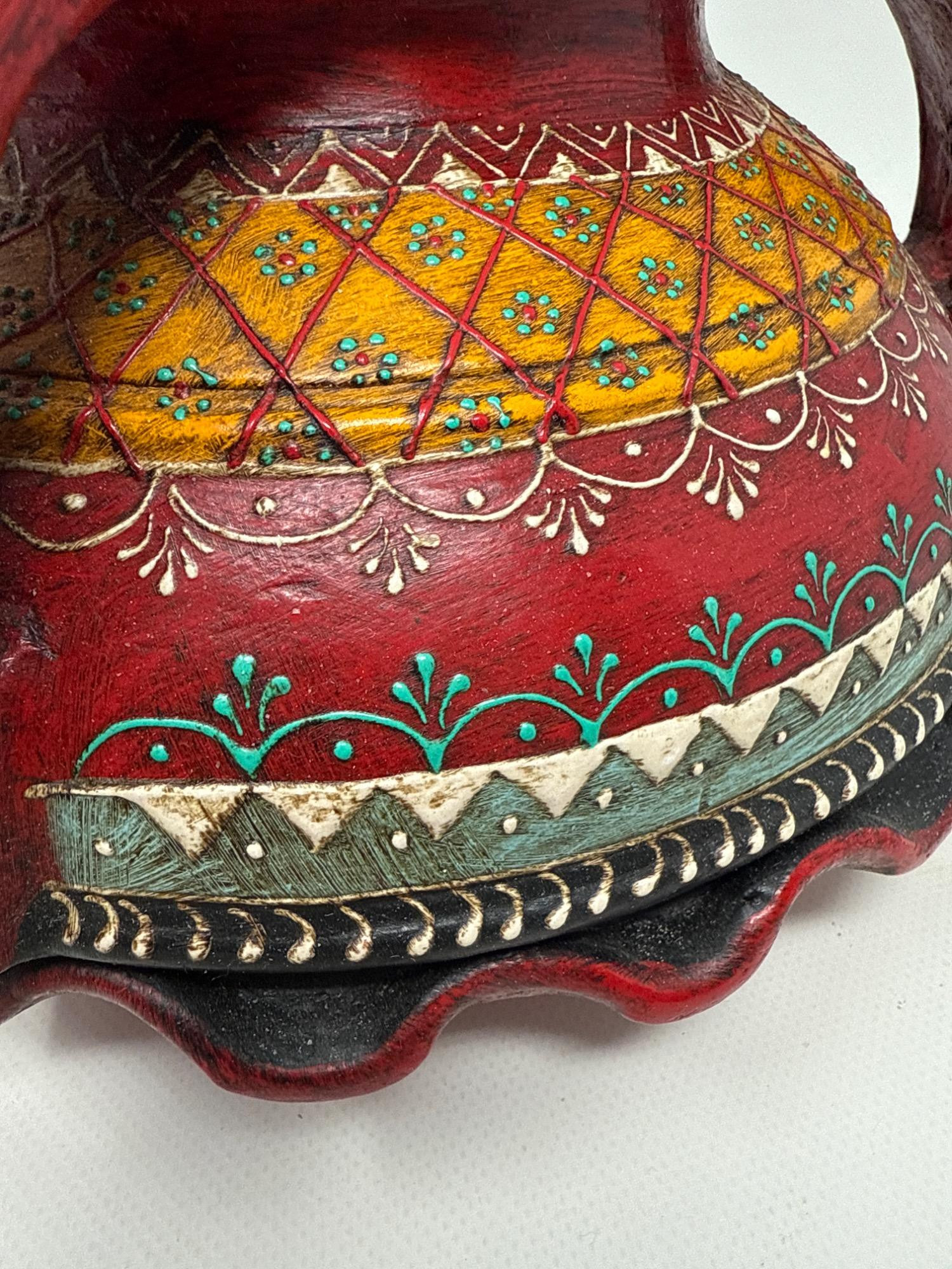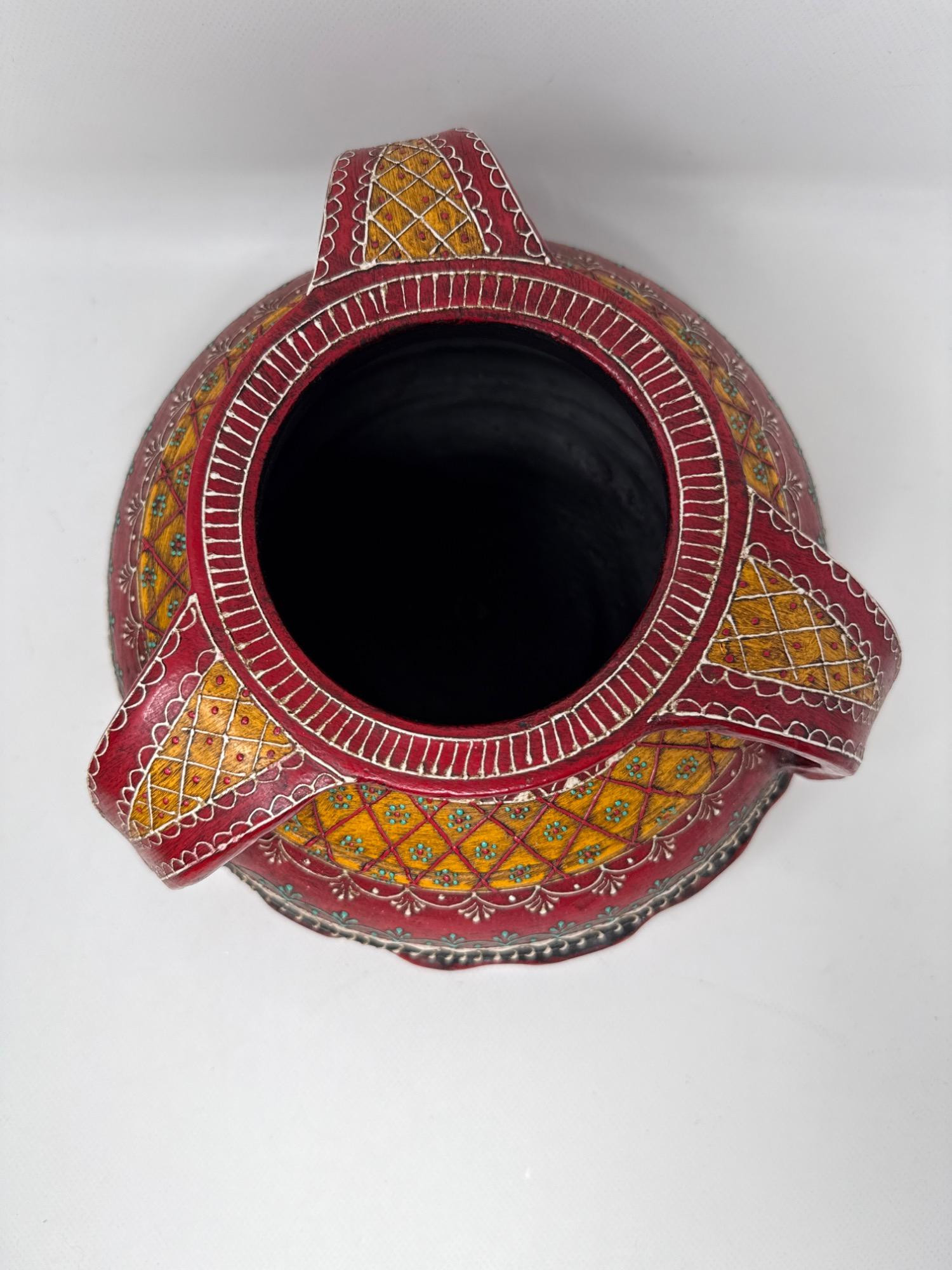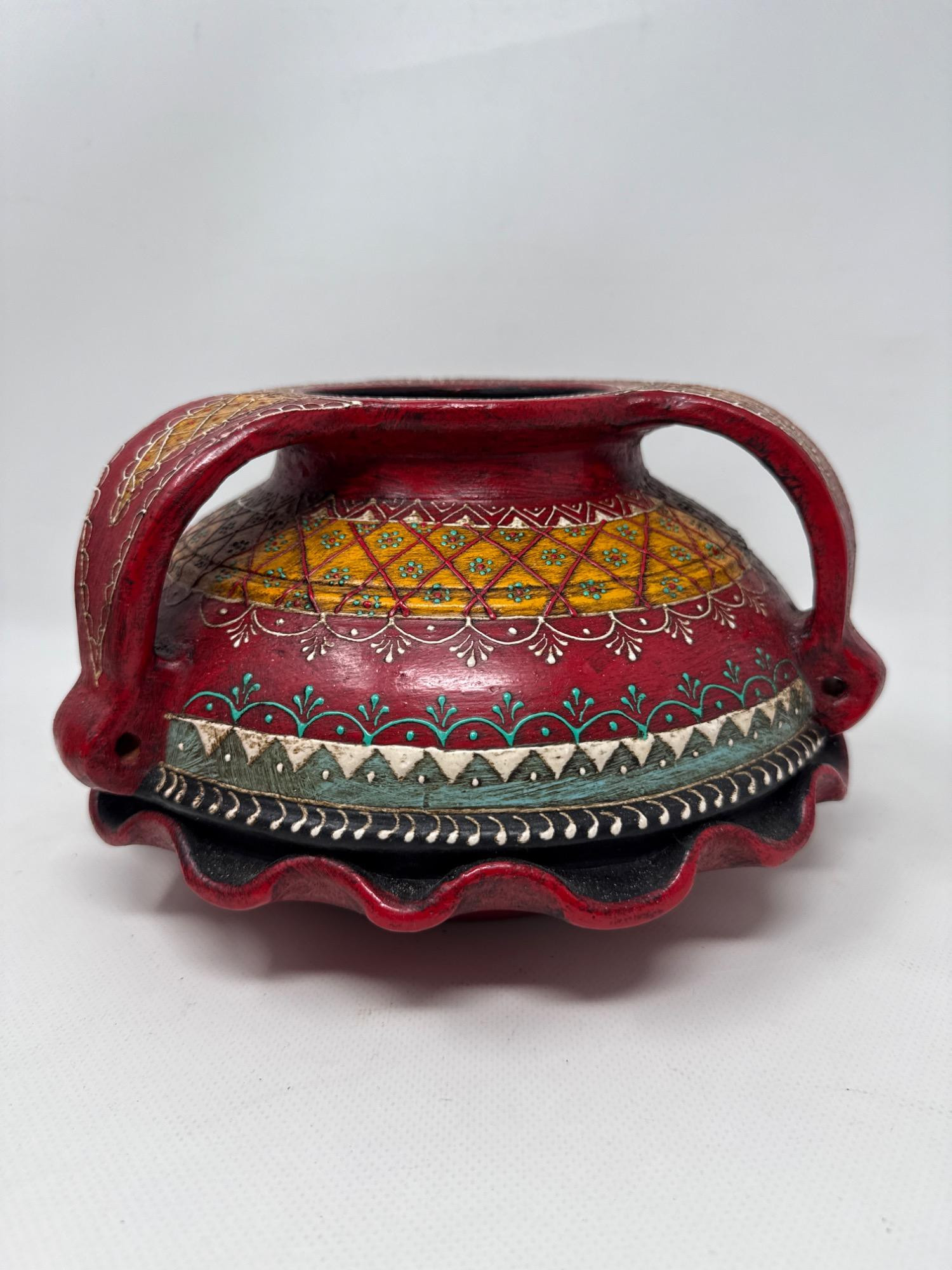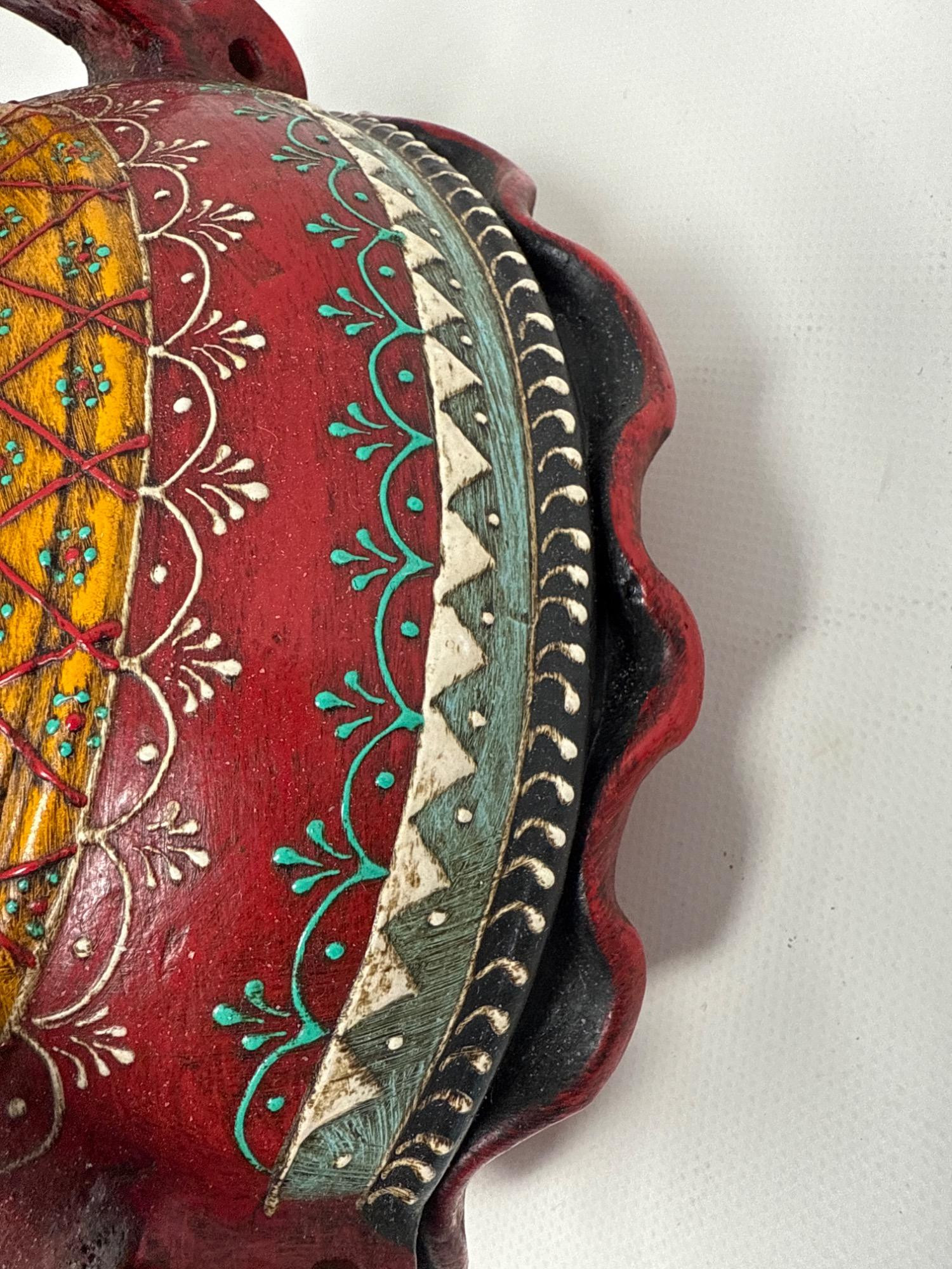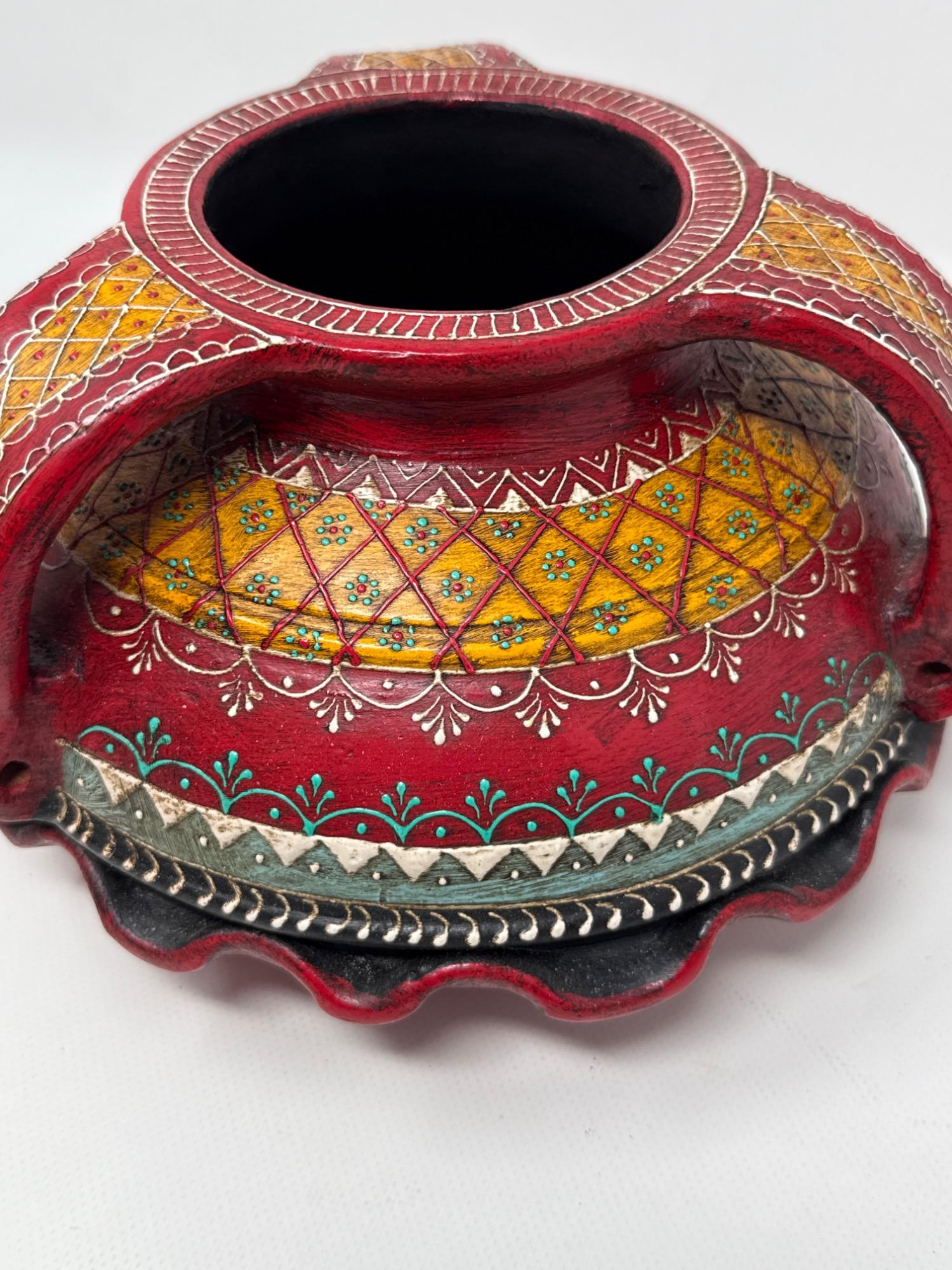 Bring a touch of handcrafted elegance to your home with this stunning pair of Urli terracotta bowls, richly hand-painted in vibrant traditional Indian patterns. Made in Rajasthan, India, each piece is crafted over 15 days using time-honored techniques, ensuring no two bowls are exactly alike. Includes: 2 bowls (one large, one small) Dimensions: Large bowl: approx. 10.5” W x 6” H Small bowl: approx. 5.5” W x 2” H Material: Terracotta Finish: Hand-painted with intricate detailing Origin: Made in India for World Market Use: Decorative only – not intended for food use