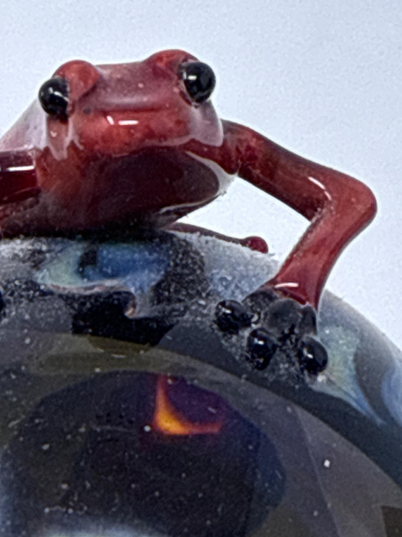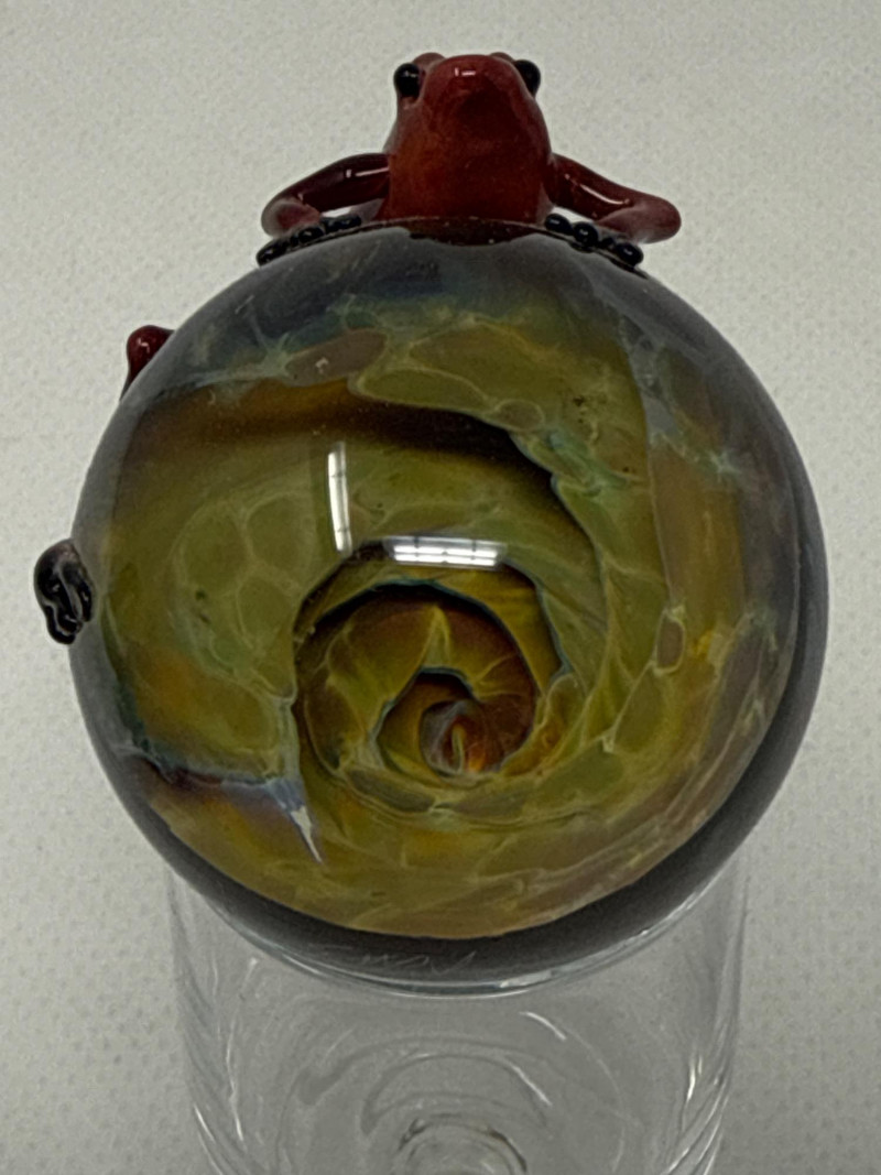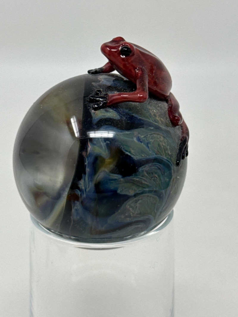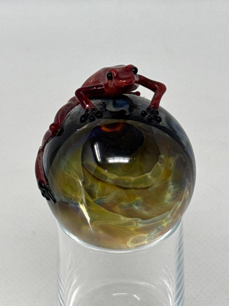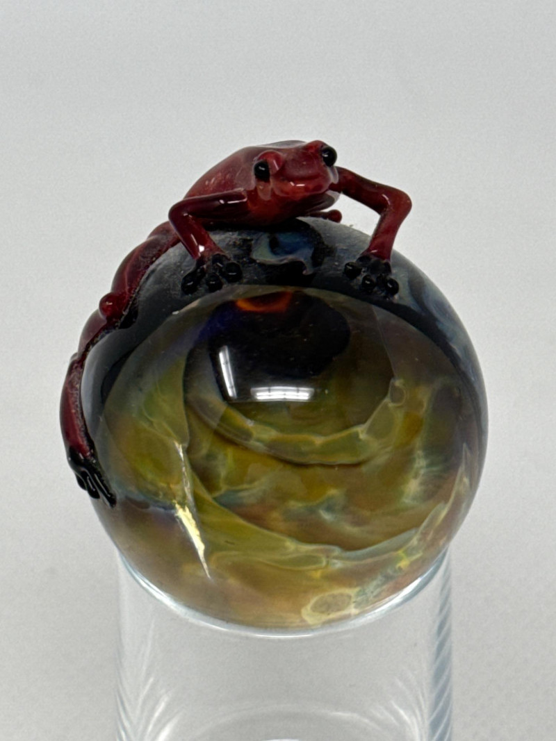 Lot # 56 - Signed Seth Parks Glass Swirl Ball with Red Frog– Amphibian Theme